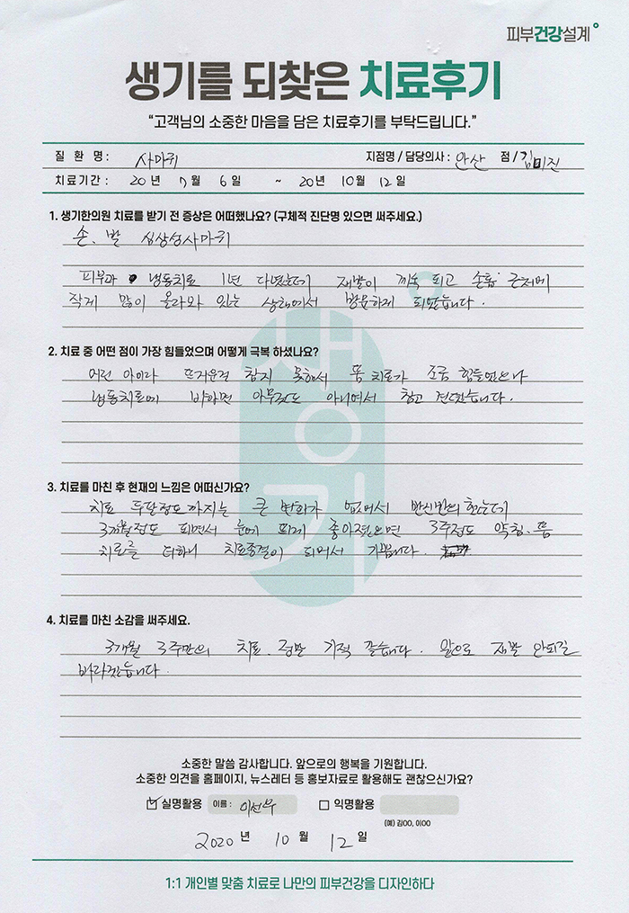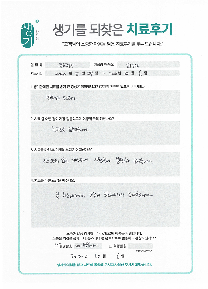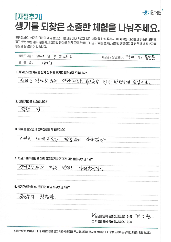 생기한의원과 함께하신 생생한 자필 및 영상 후기를 소개합니다.
