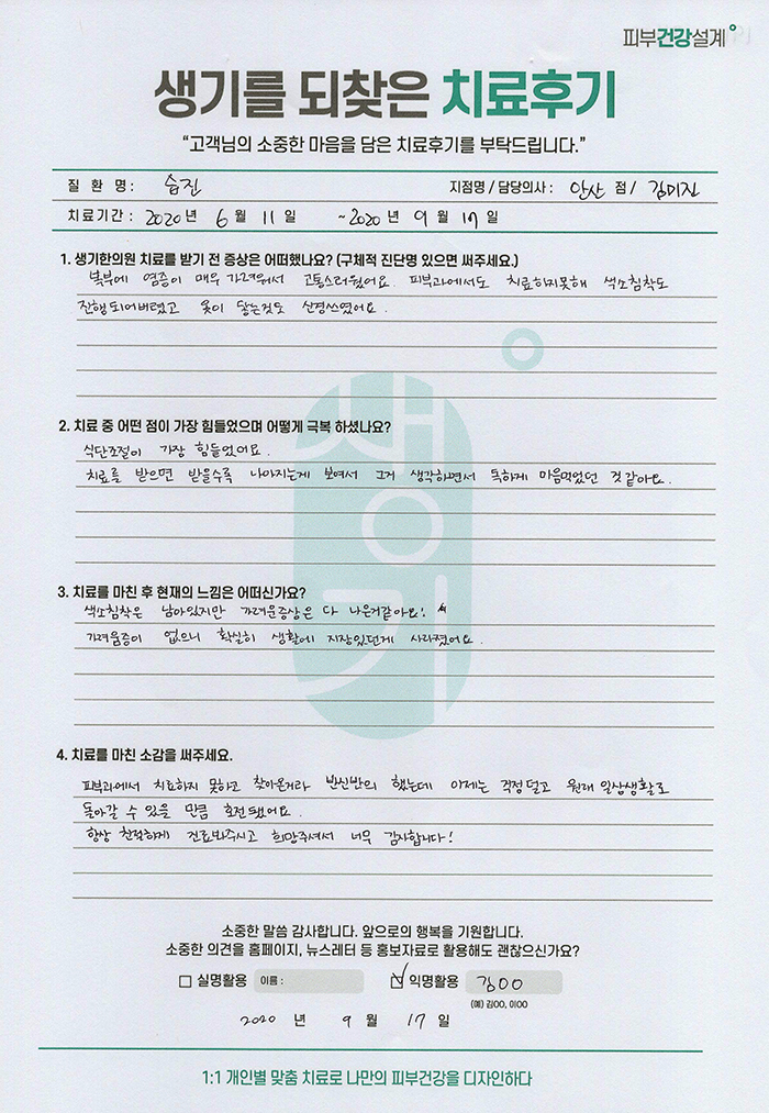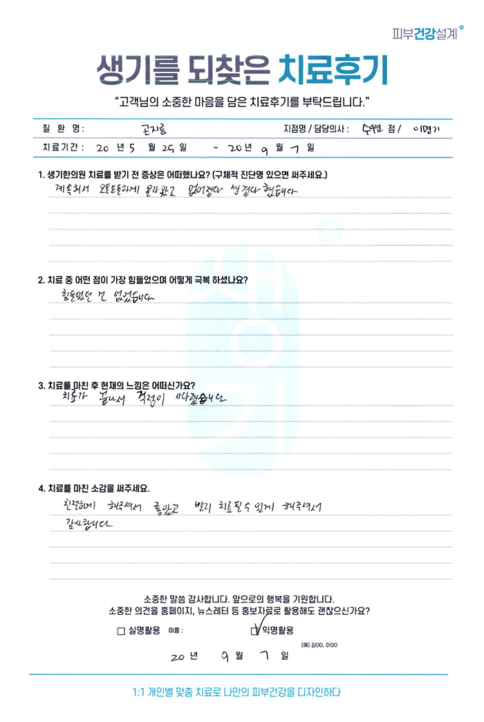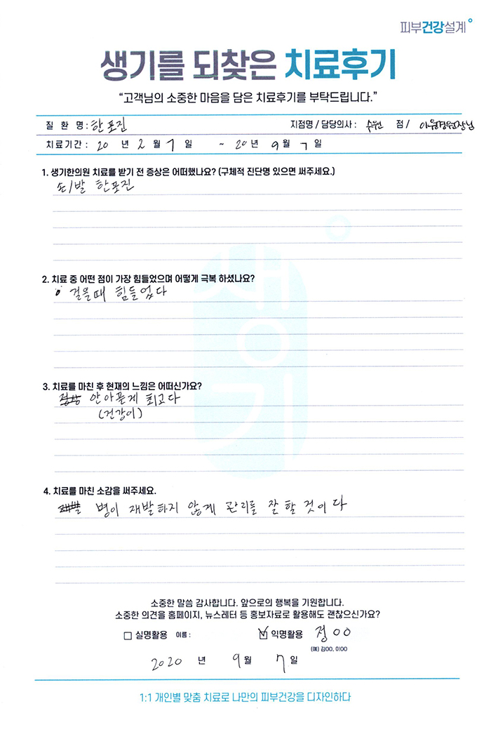 생기한의원과 함께하신 생생한 자필 및 영상 후기를 소개합니다.