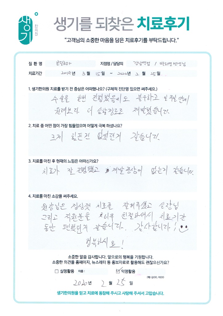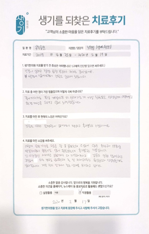 생기한의원과 함께하신 생생한 자필 및 영상 후기를 소개합니다.