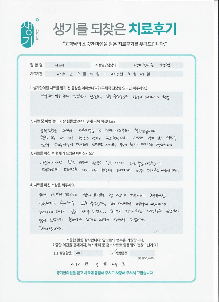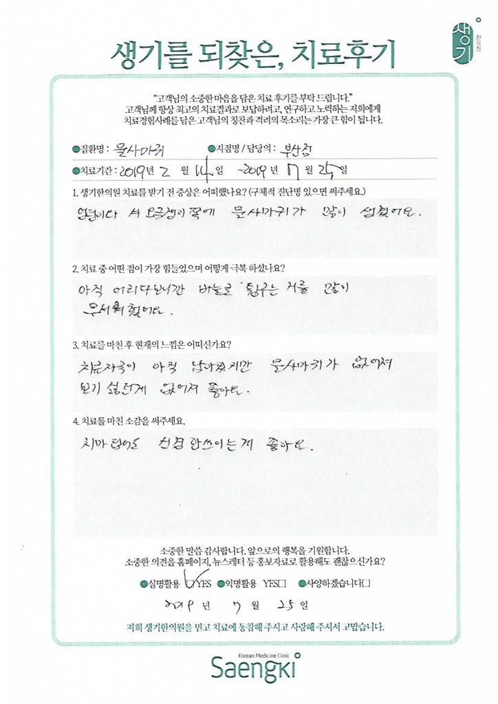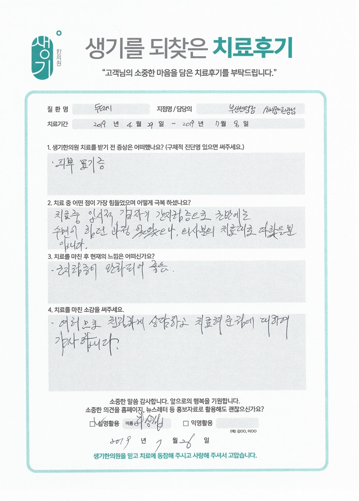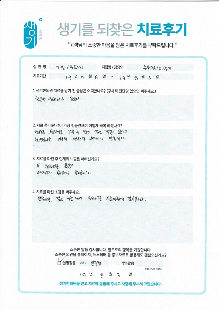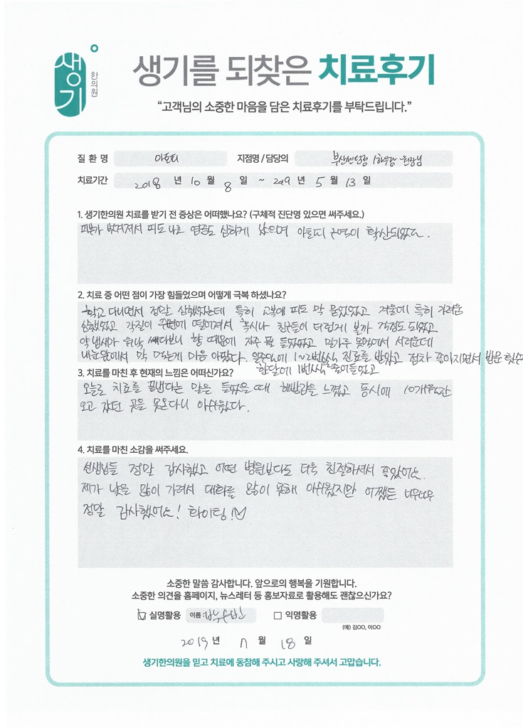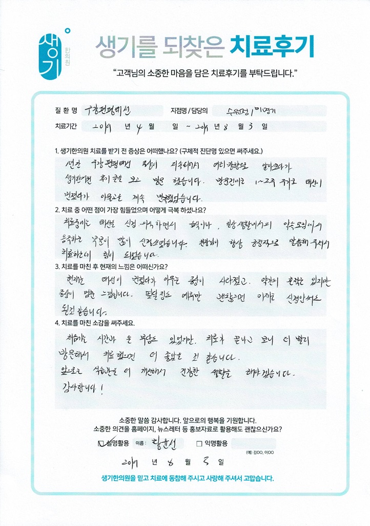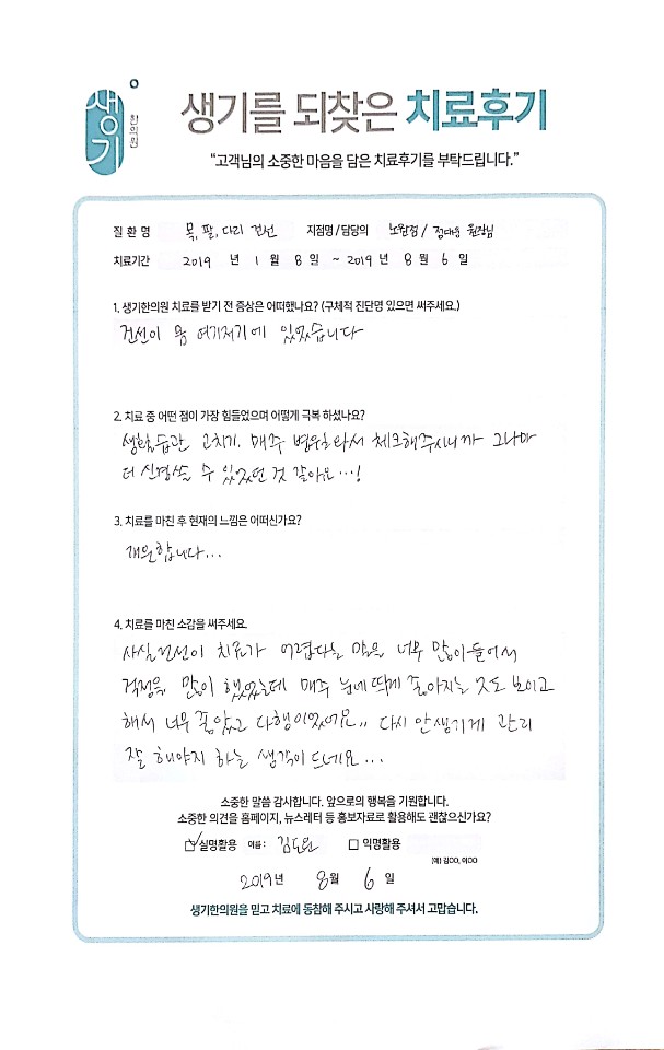 생기한의원과 함께하신 생생한 자필 및 영상 후기를 소개합니다.