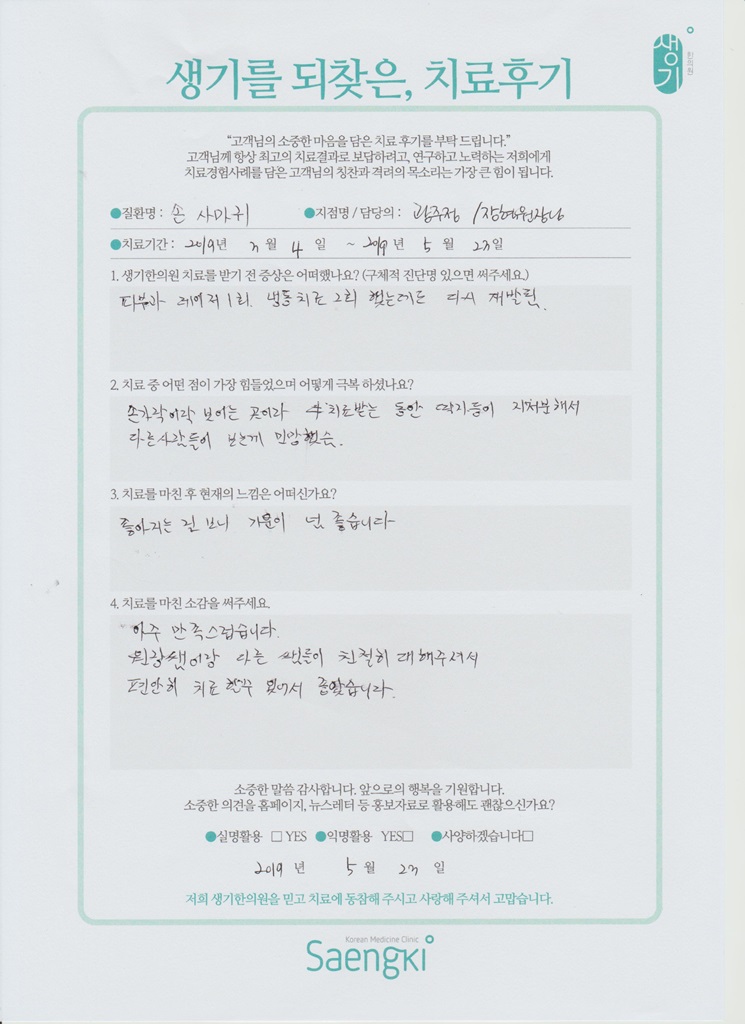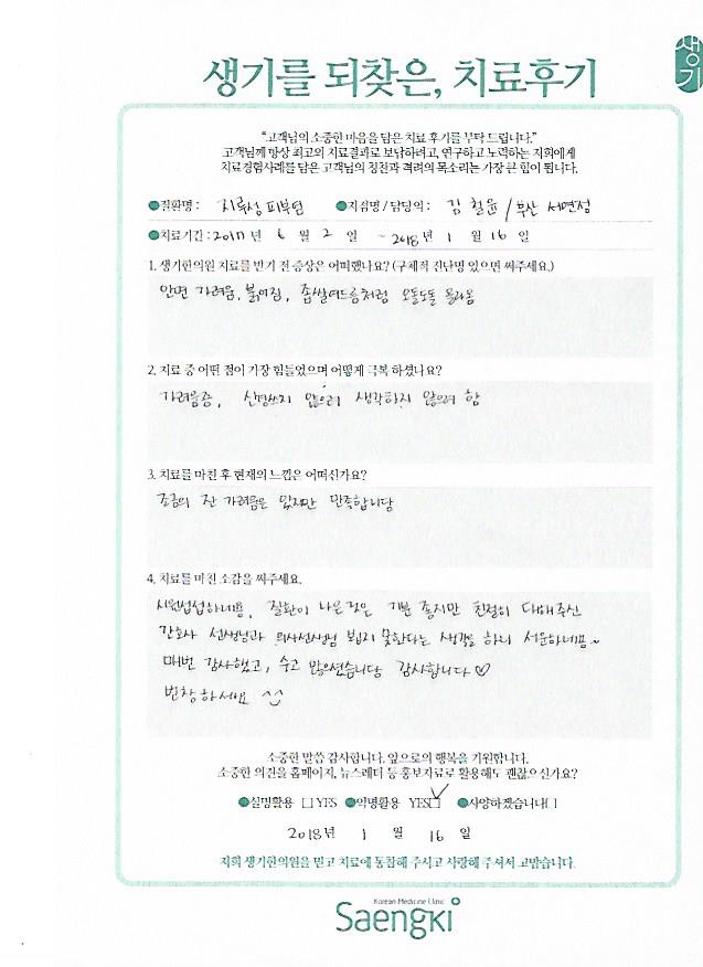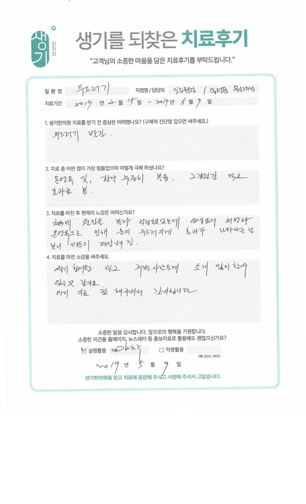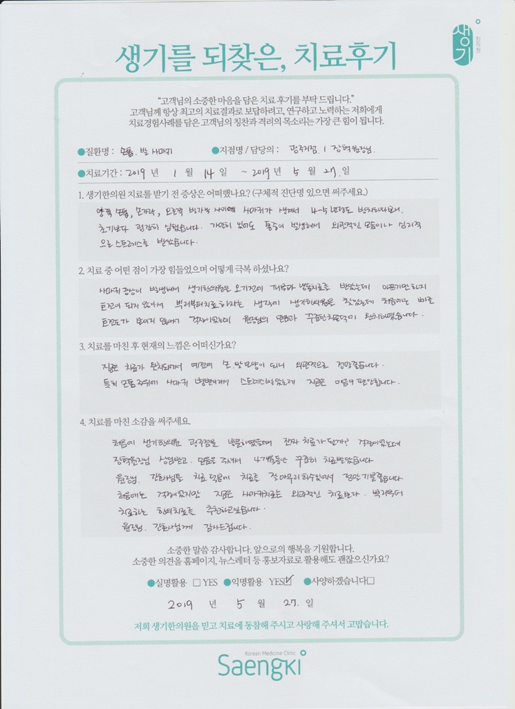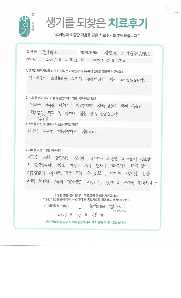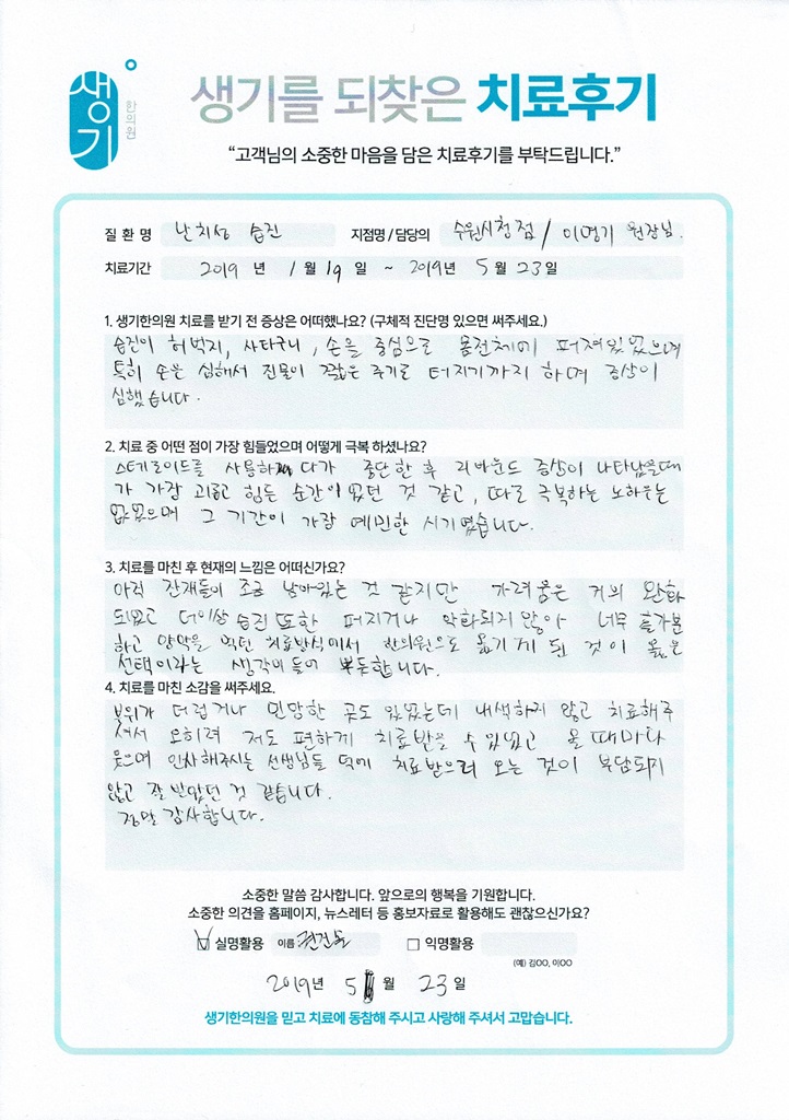 생기한의원과 함께하신 생생한 자필 및 영상 후기를 소개합니다.