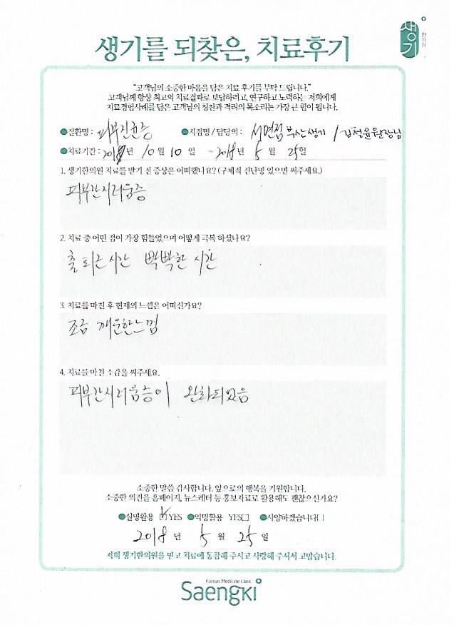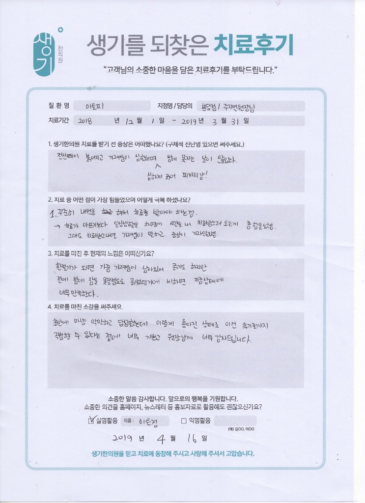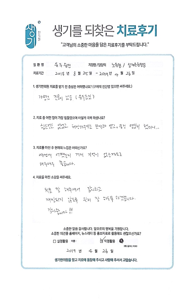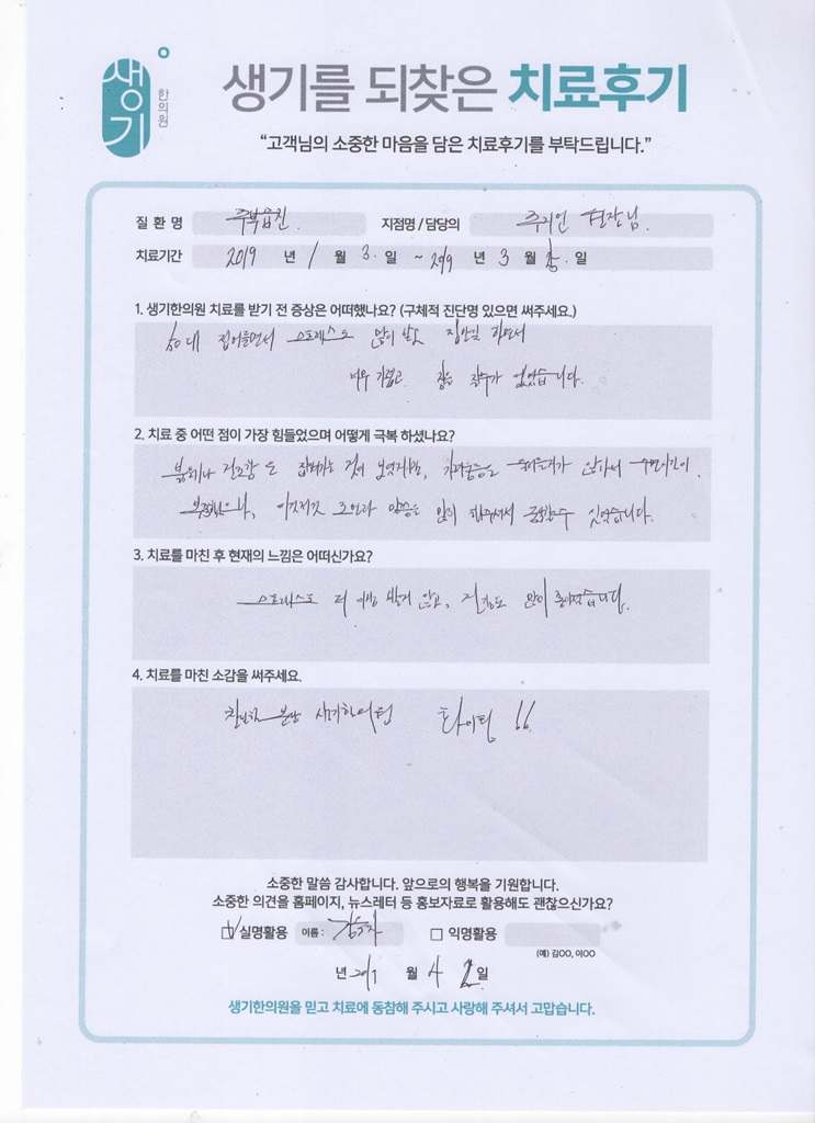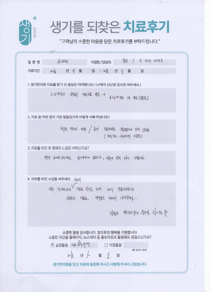 생기한의원과 함께하신 생생한 자필 및 영상 후기를 소개합니다.