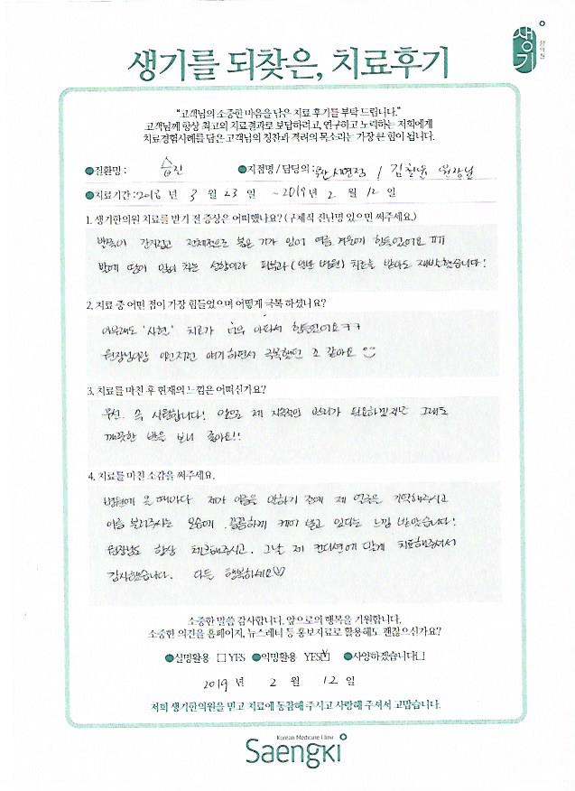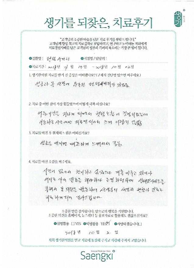 생기한의원과 함께하신 생생한 자필 및 영상 후기를 소개합니다.