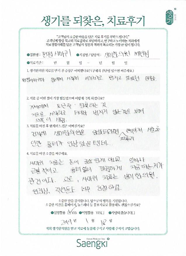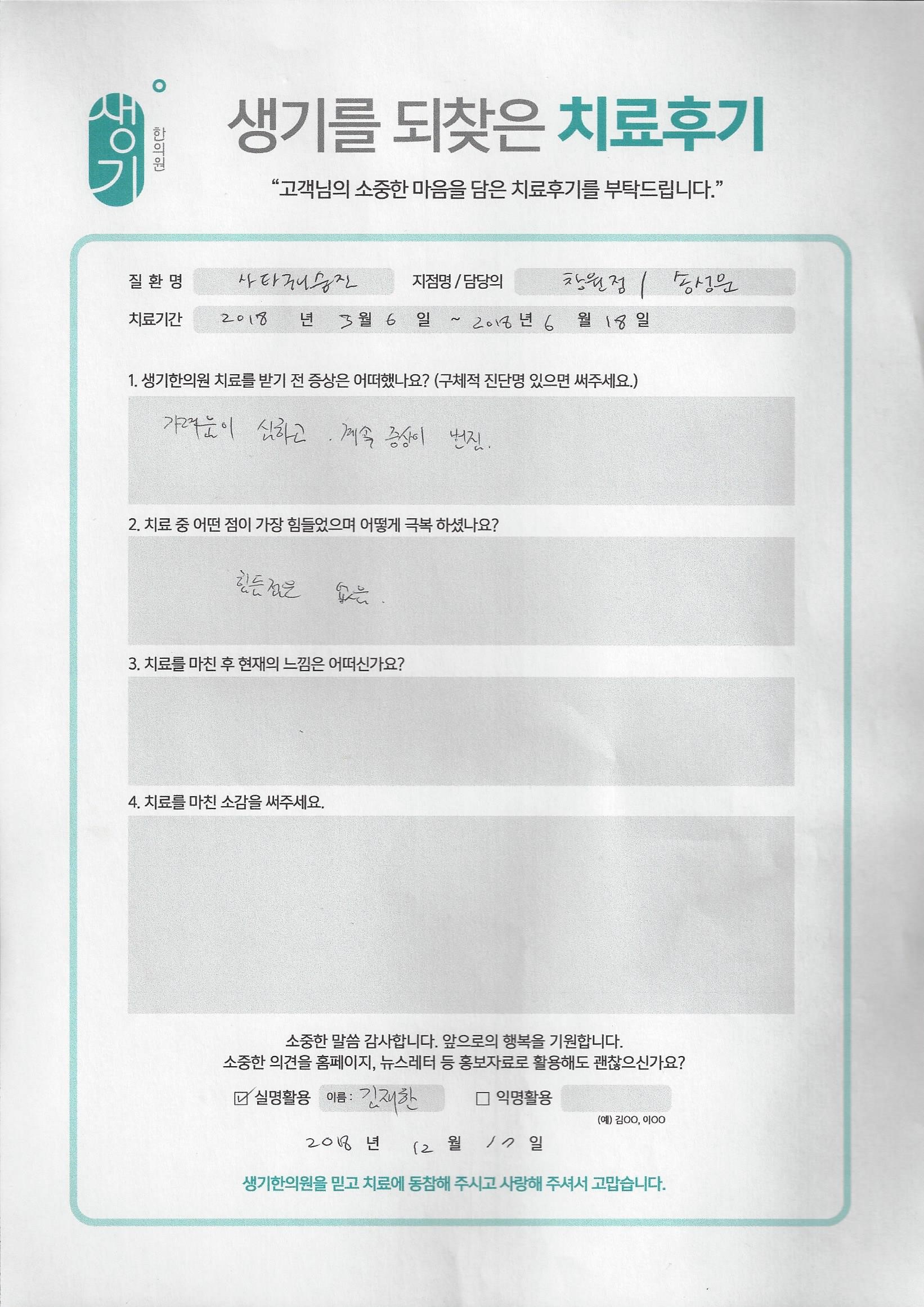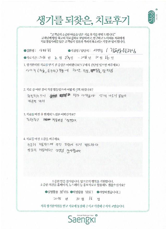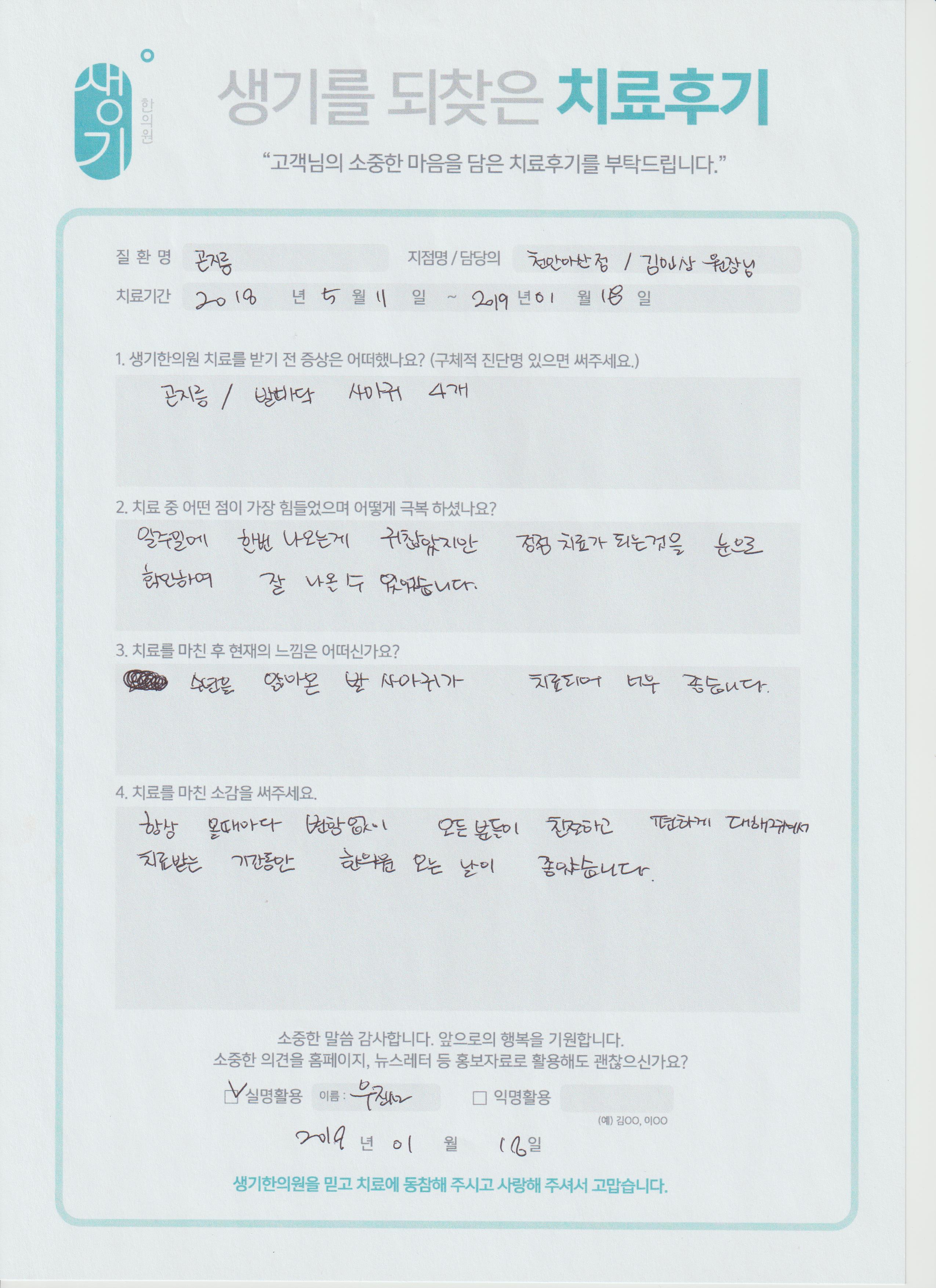 생기한의원과 함께하신 생생한 자필 및 영상 후기를 소개합니다.
