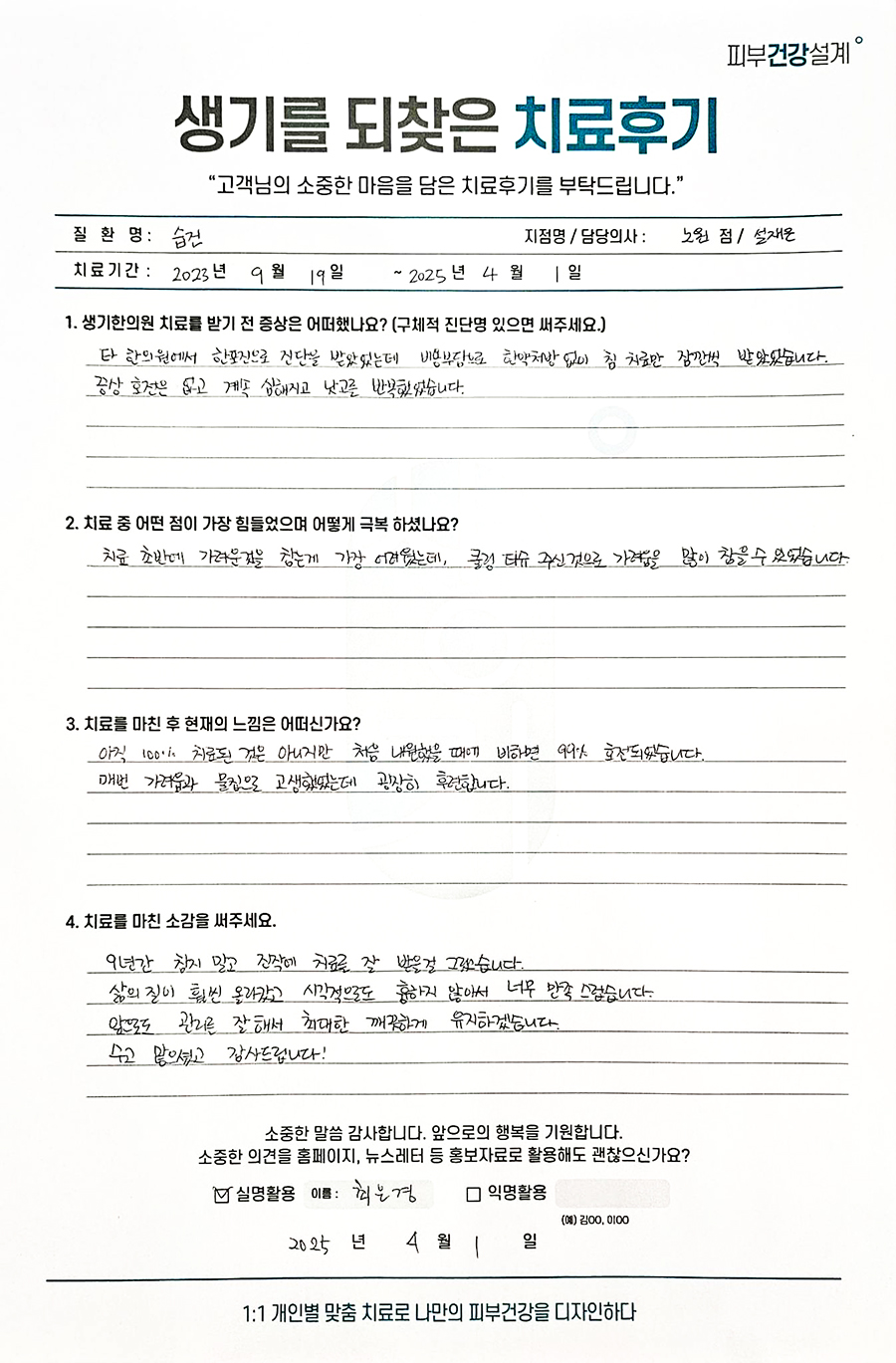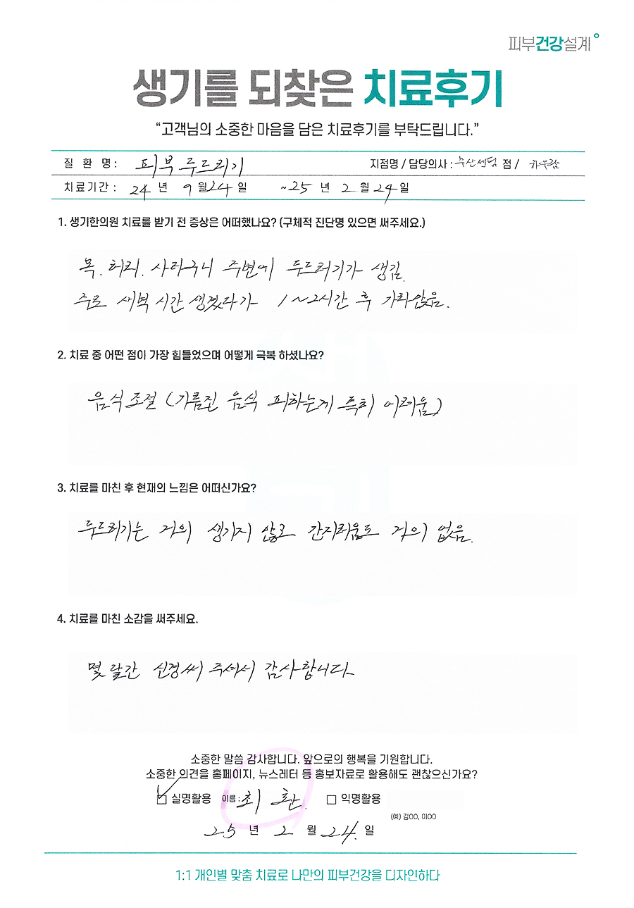 생기한의원과 함께하신 생생한 자필 및 영상 후기를 소개합니다.