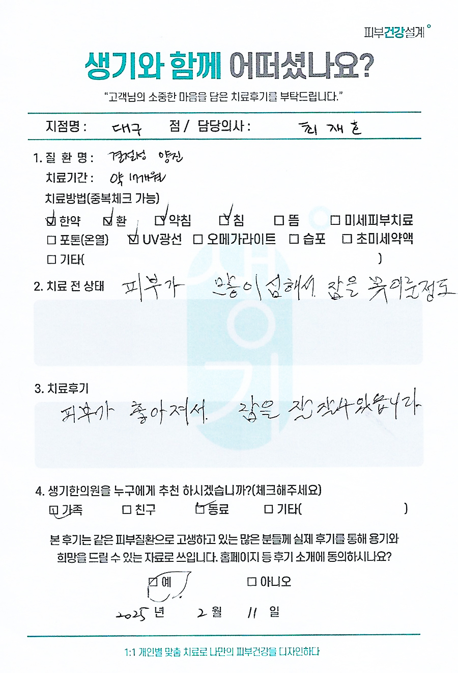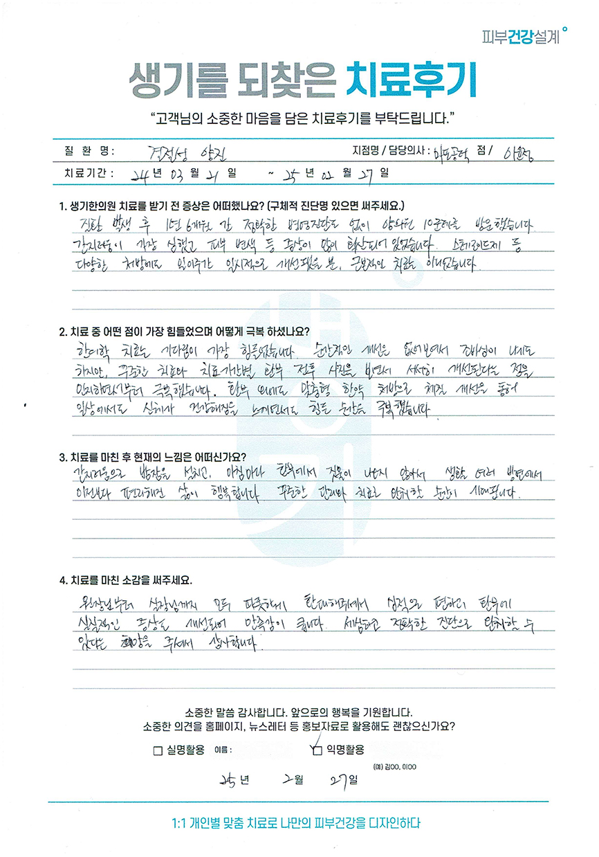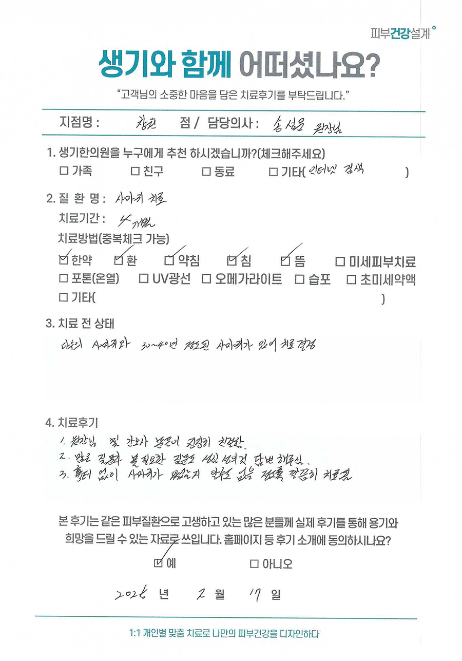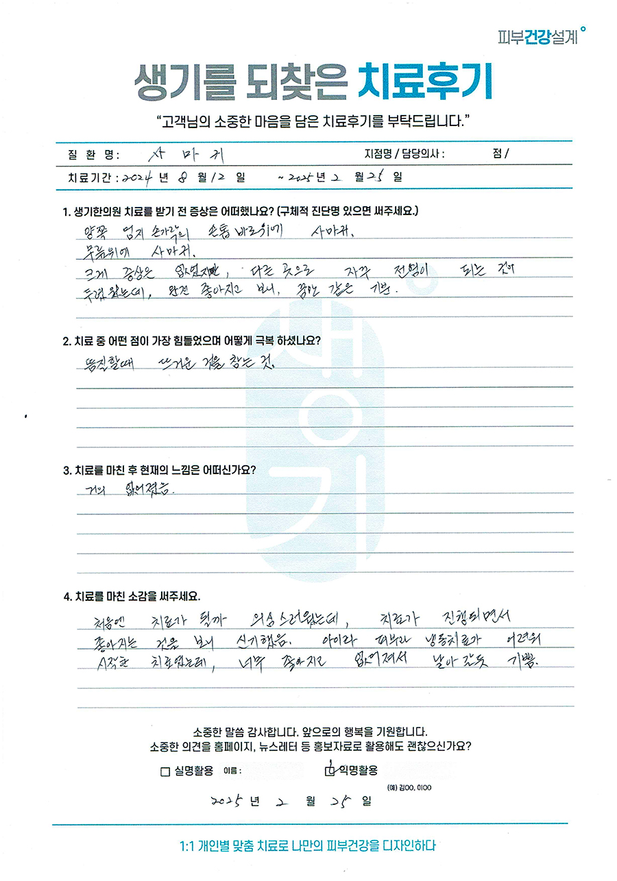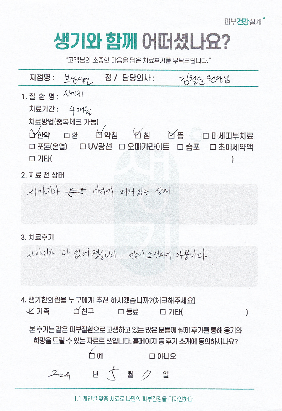 생기한의원과 함께하신 생생한 자필 및 영상 후기를 소개합니다.