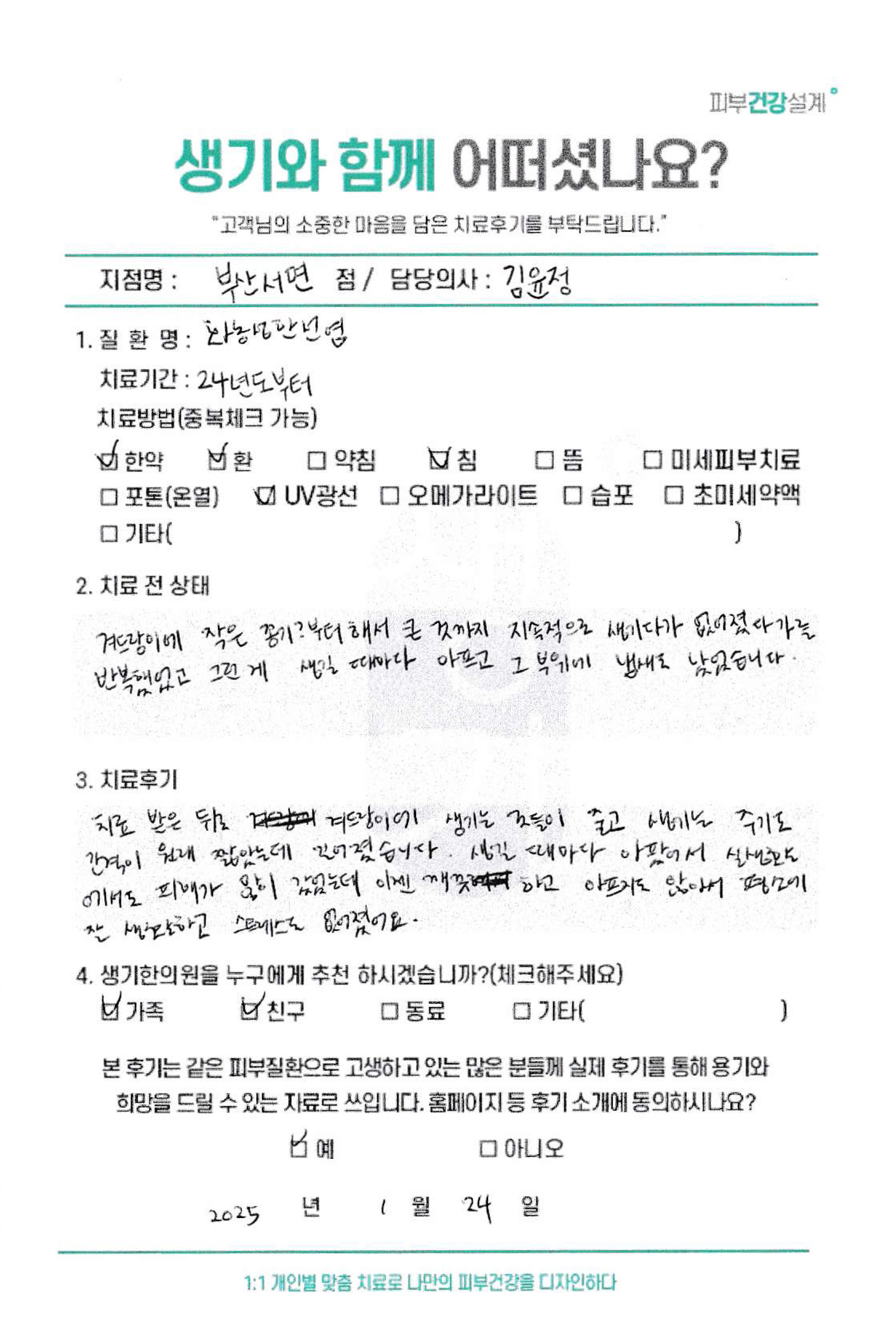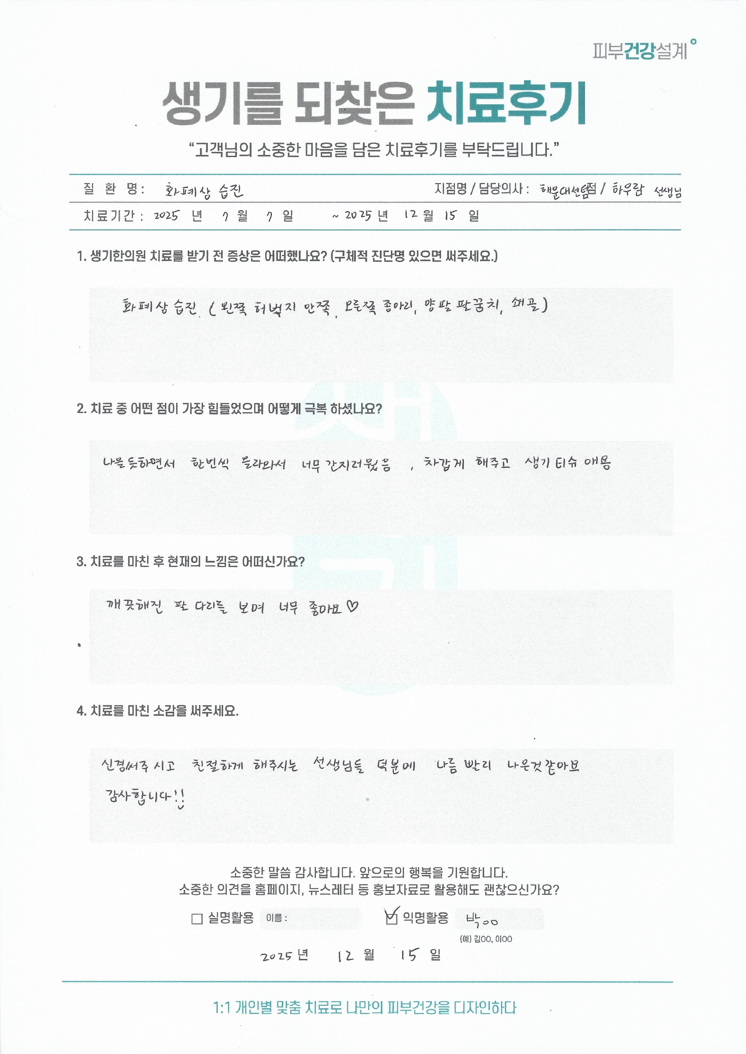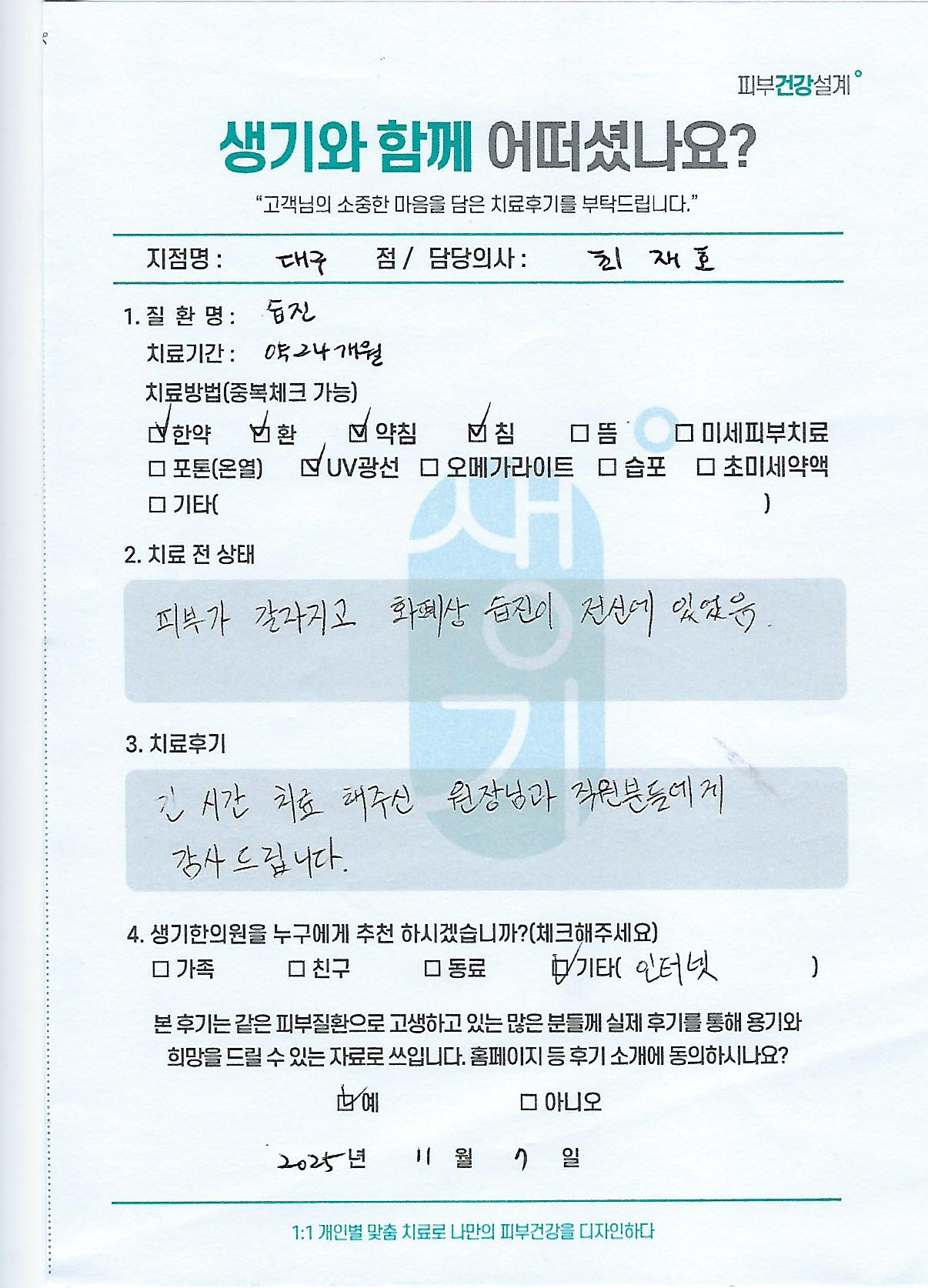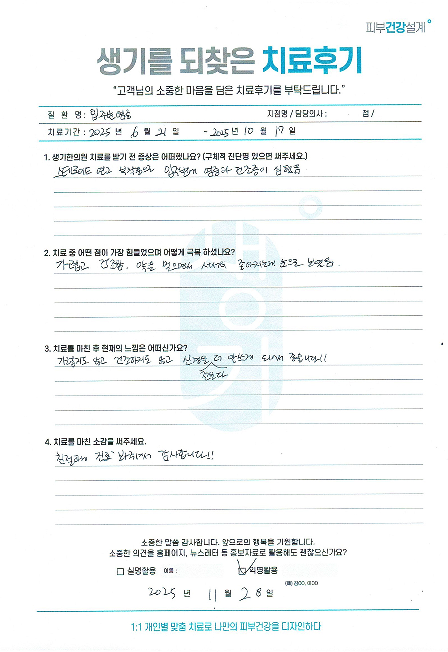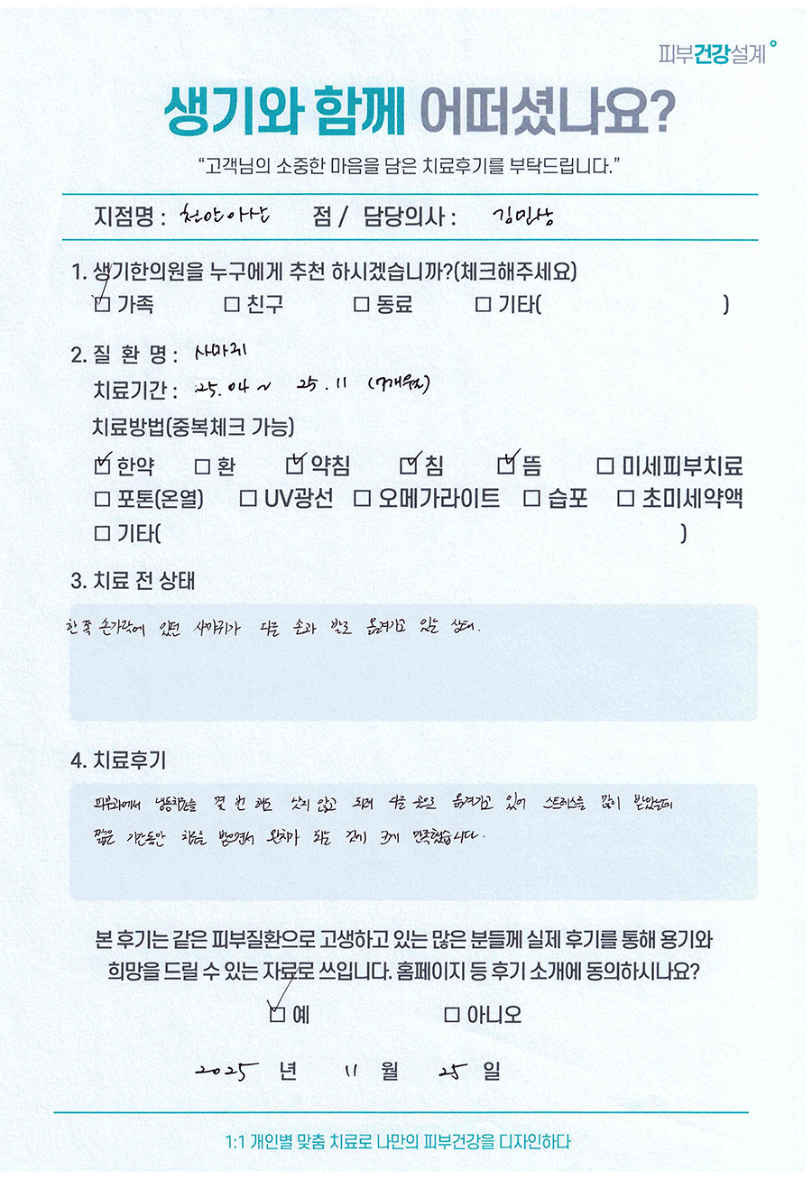 생기한의원과 함께하신 생생한 자필 및 영상 후기를 소개합니다.