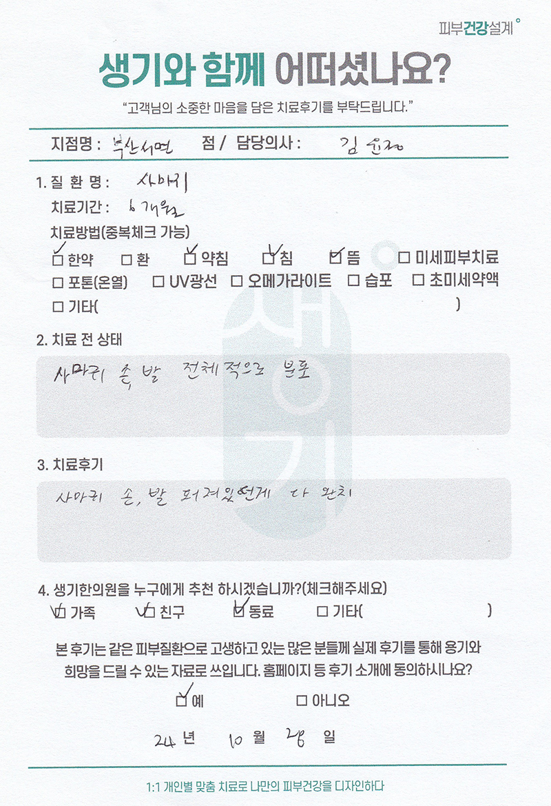 생기한의원과 함께하신 생생한 자필 및 영상 후기를 소개합니다.