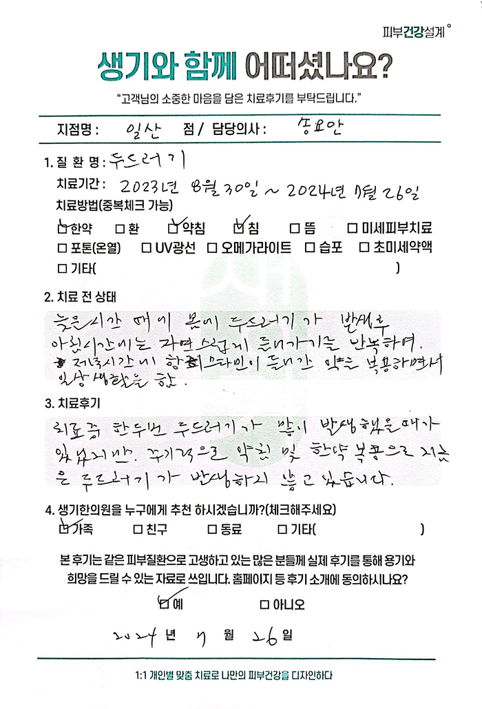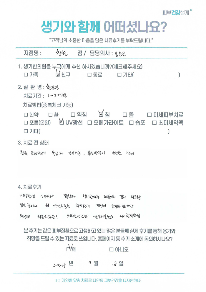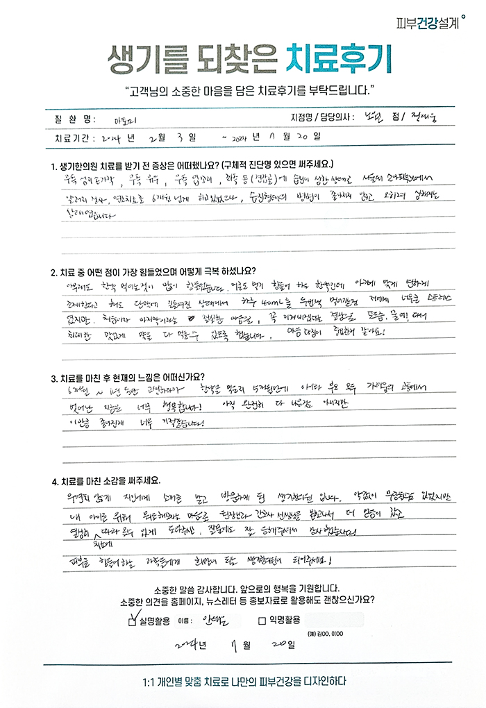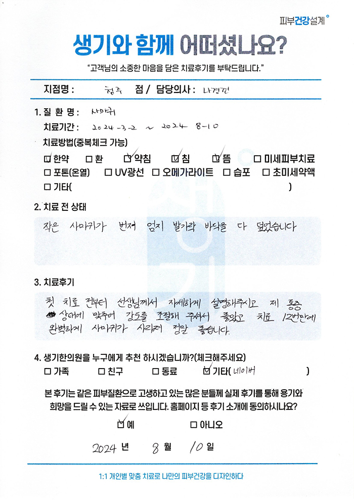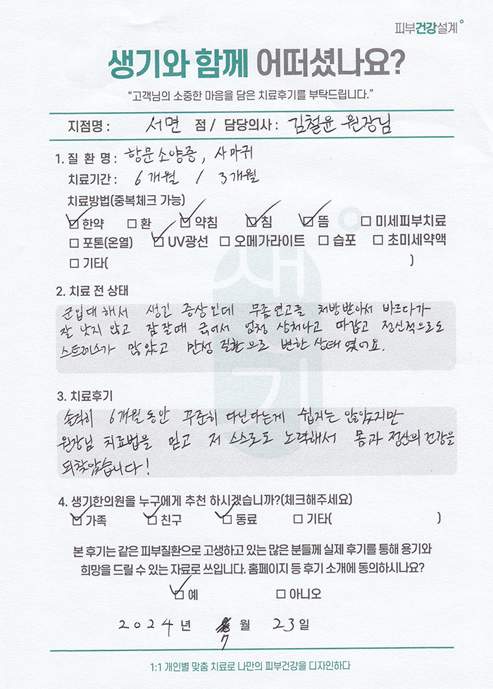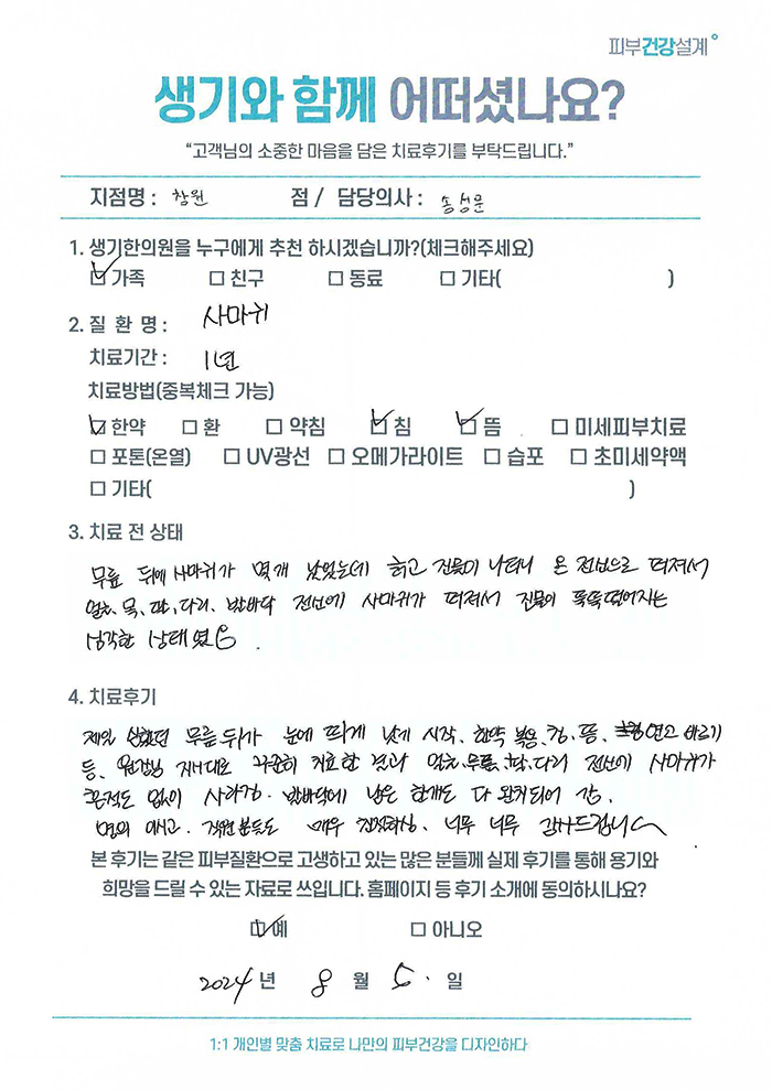 생기한의원과 함께하신 생생한 자필 및 영상 후기를 소개합니다.