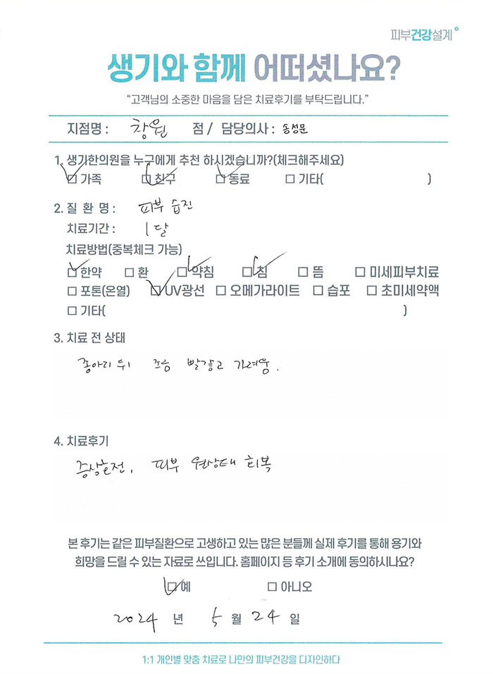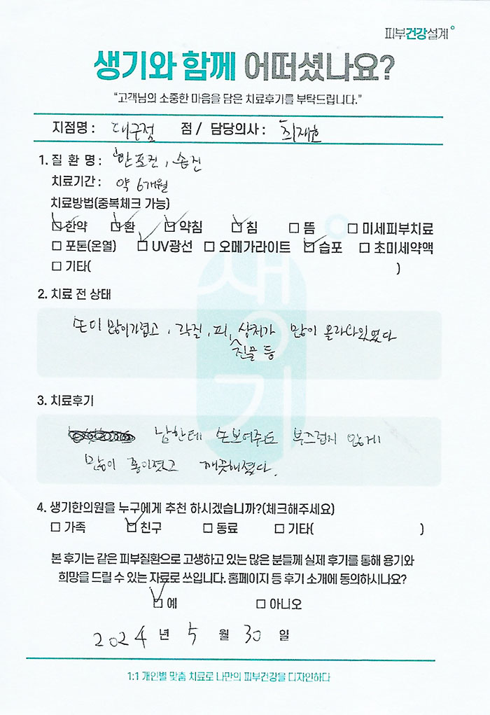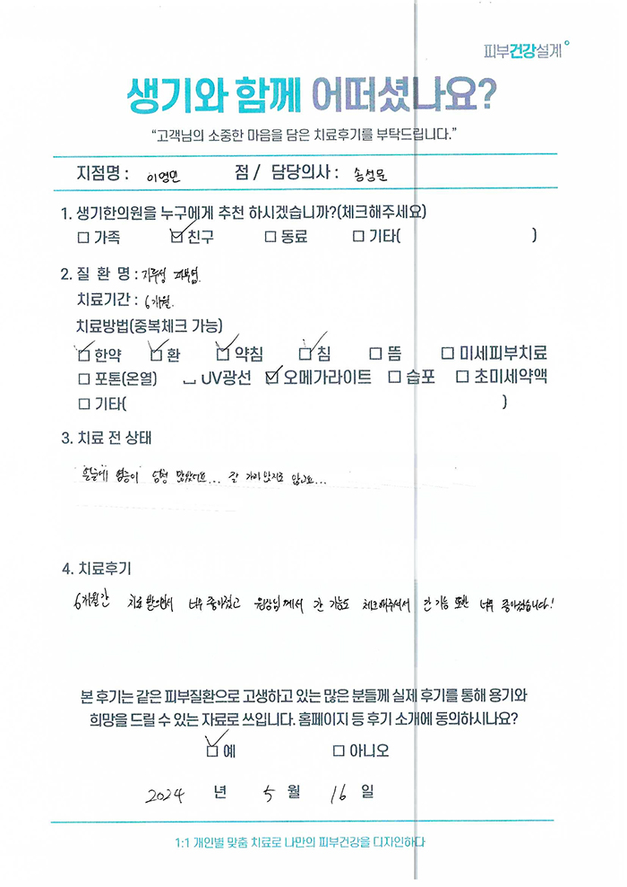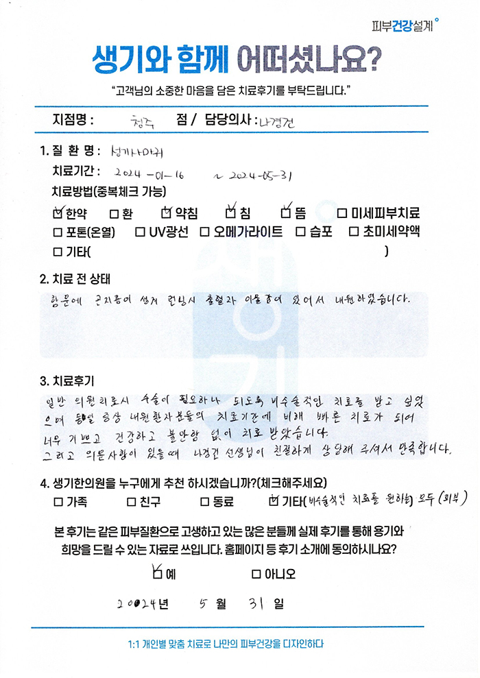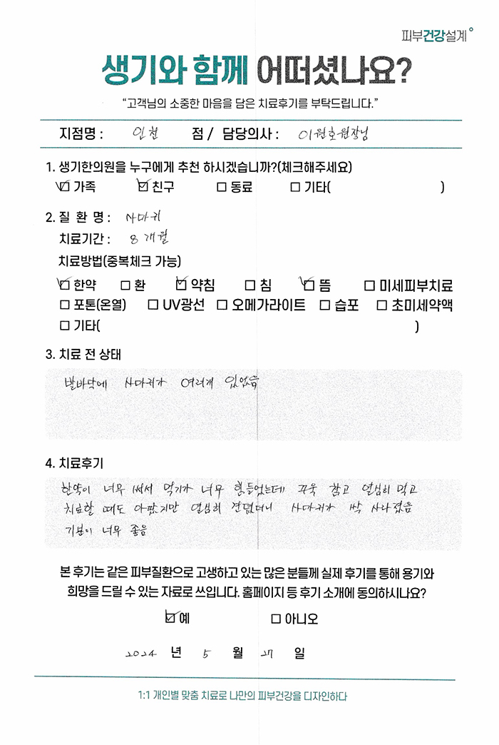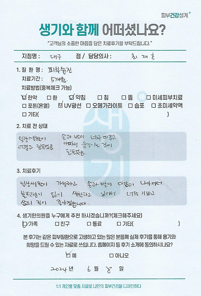 생기한의원과 함께하신 생생한 자필 및 영상 후기를 소개합니다.