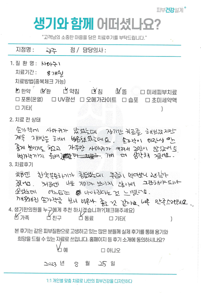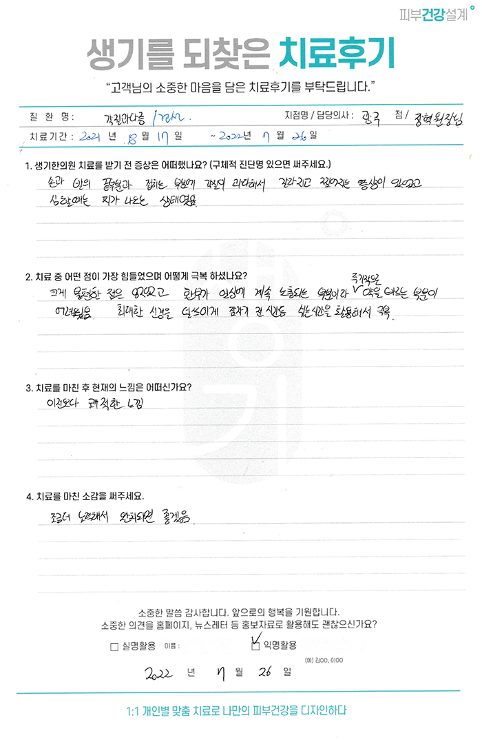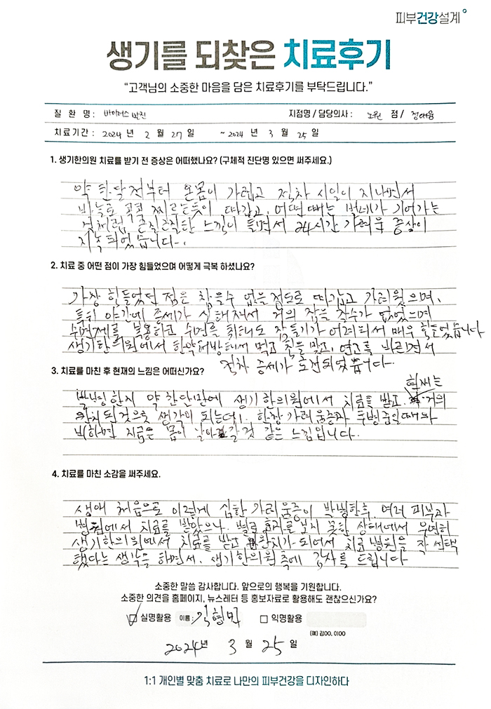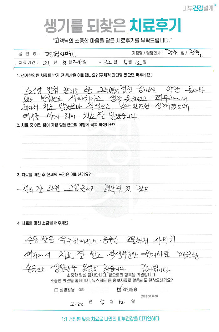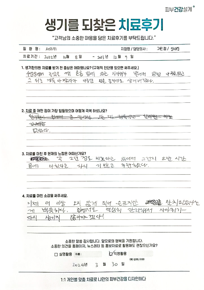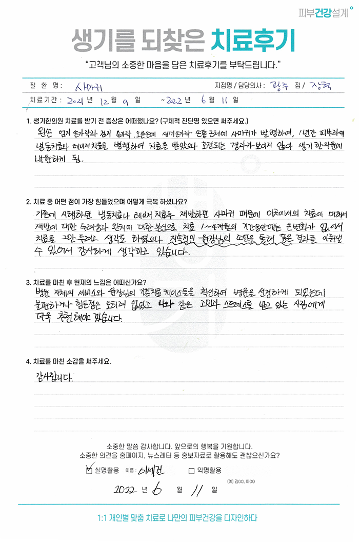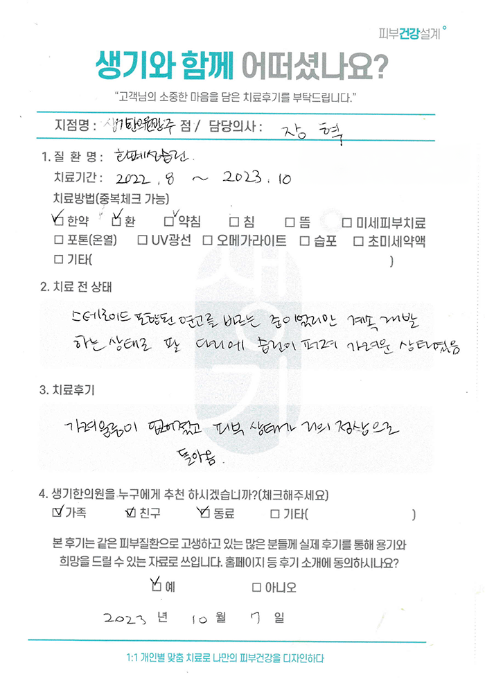 생기한의원과 함께하신 생생한 자필 및 영상 후기를 소개합니다.