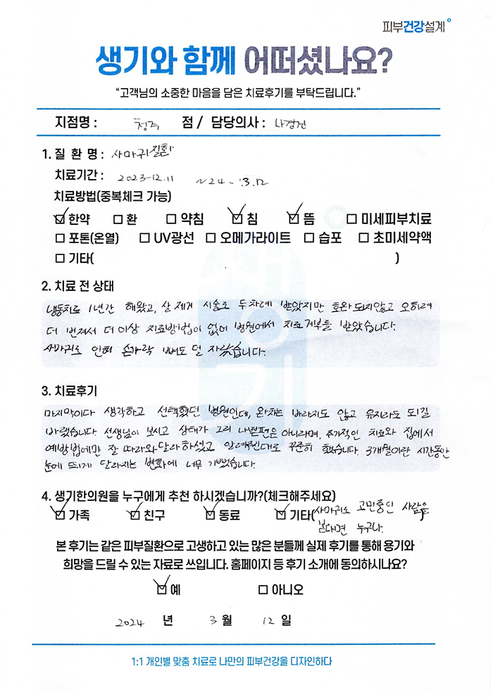 생기한의원과 함께하신 생생한 자필 및 영상 후기를 소개합니다.