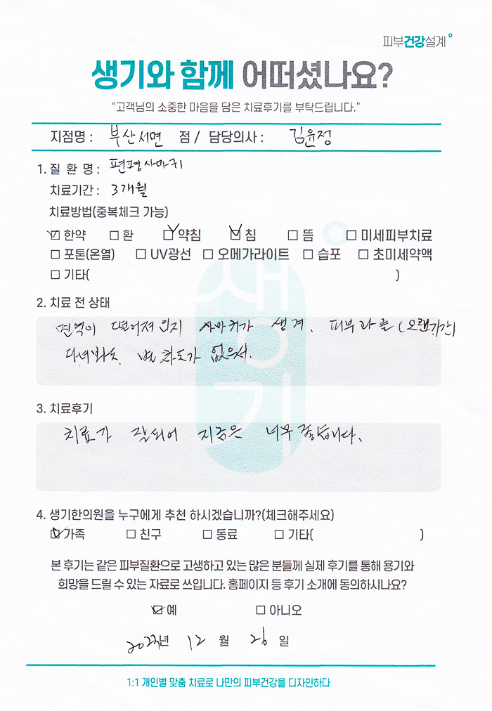 생기한의원과 함께하신 생생한 자필 및 영상 후기를 소개합니다.
