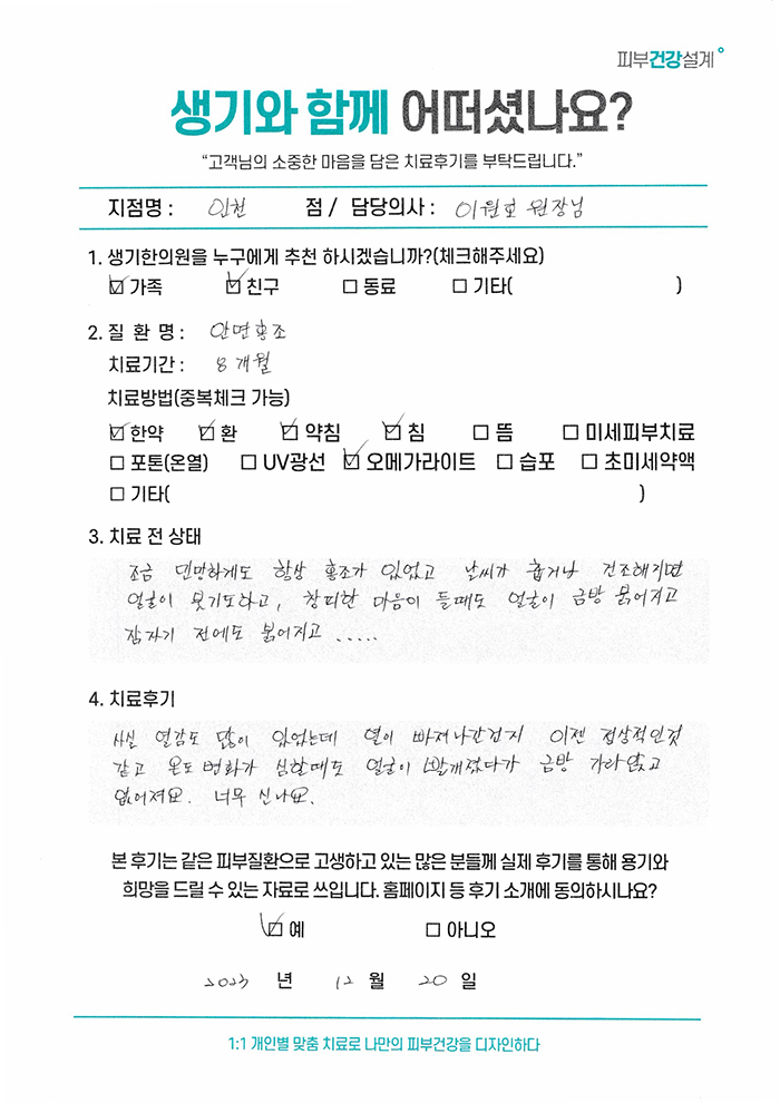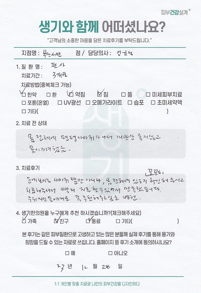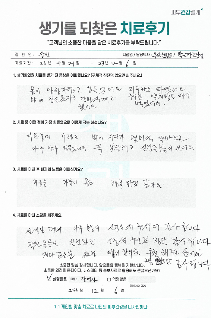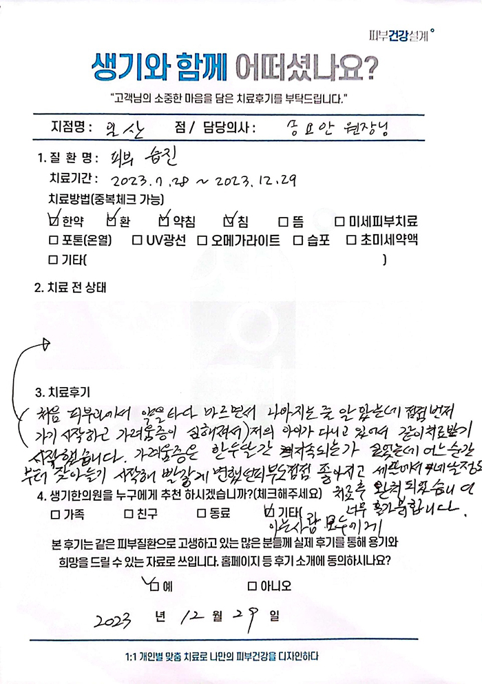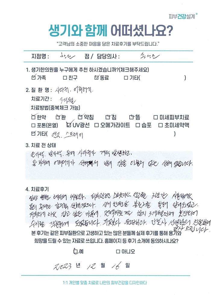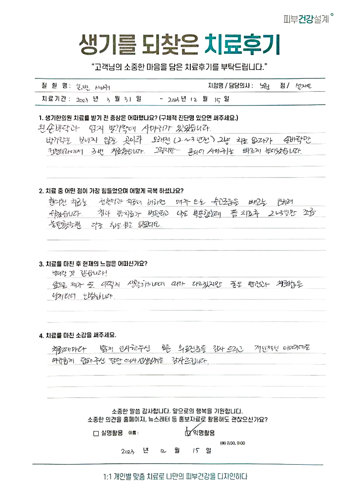 생기한의원과 함께하신 생생한 자필 및 영상 후기를 소개합니다.