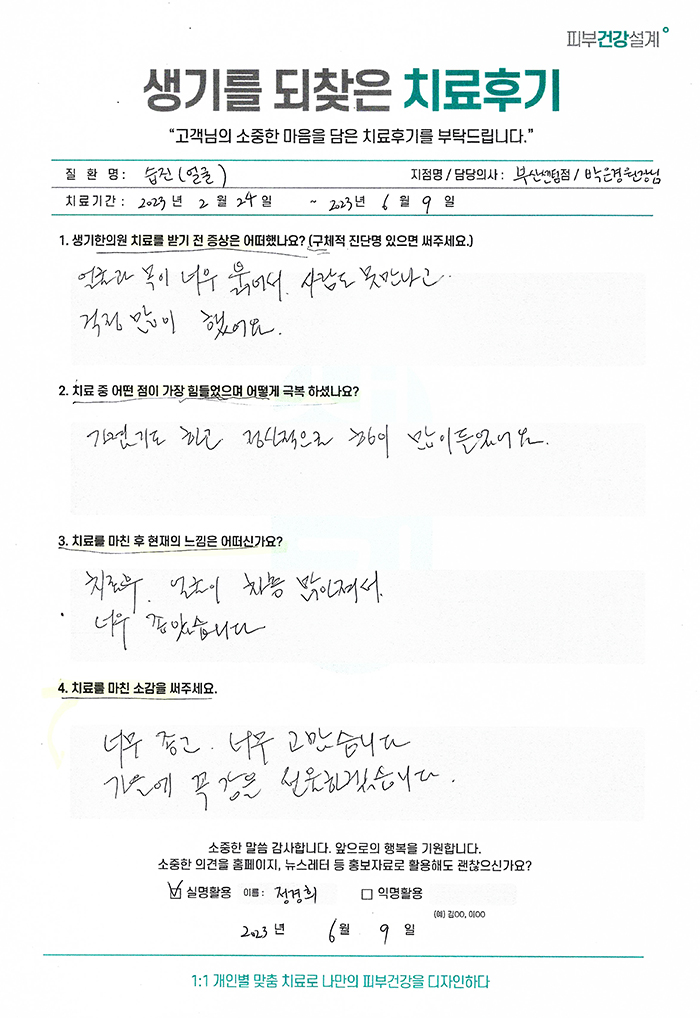 생기한의원과 함께하신 생생한 자필 및 영상 후기를 소개합니다.