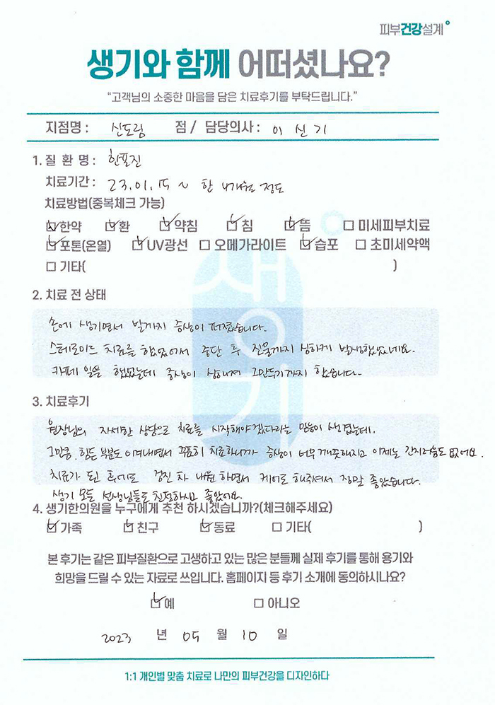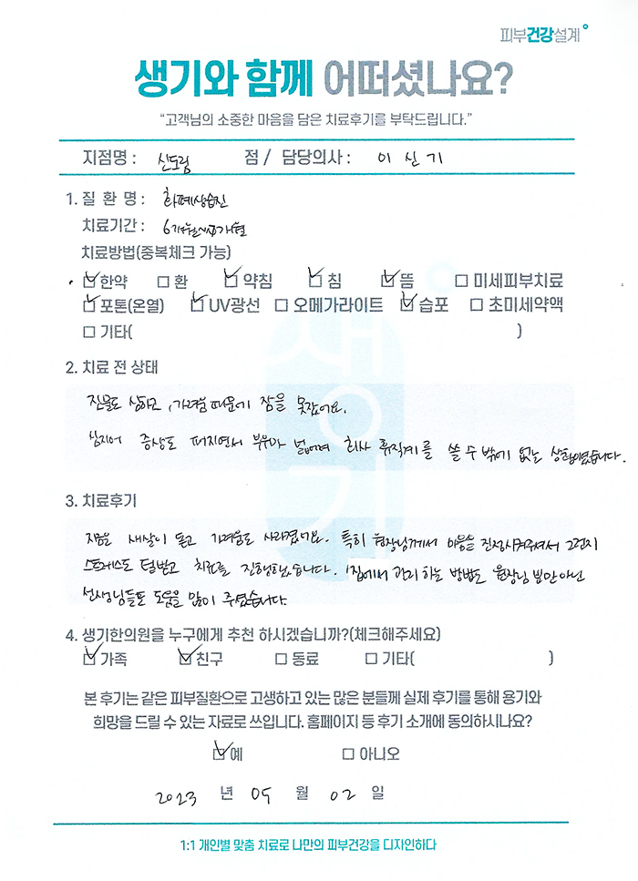 생기한의원과 함께하신 생생한 자필 및 영상 후기를 소개합니다.