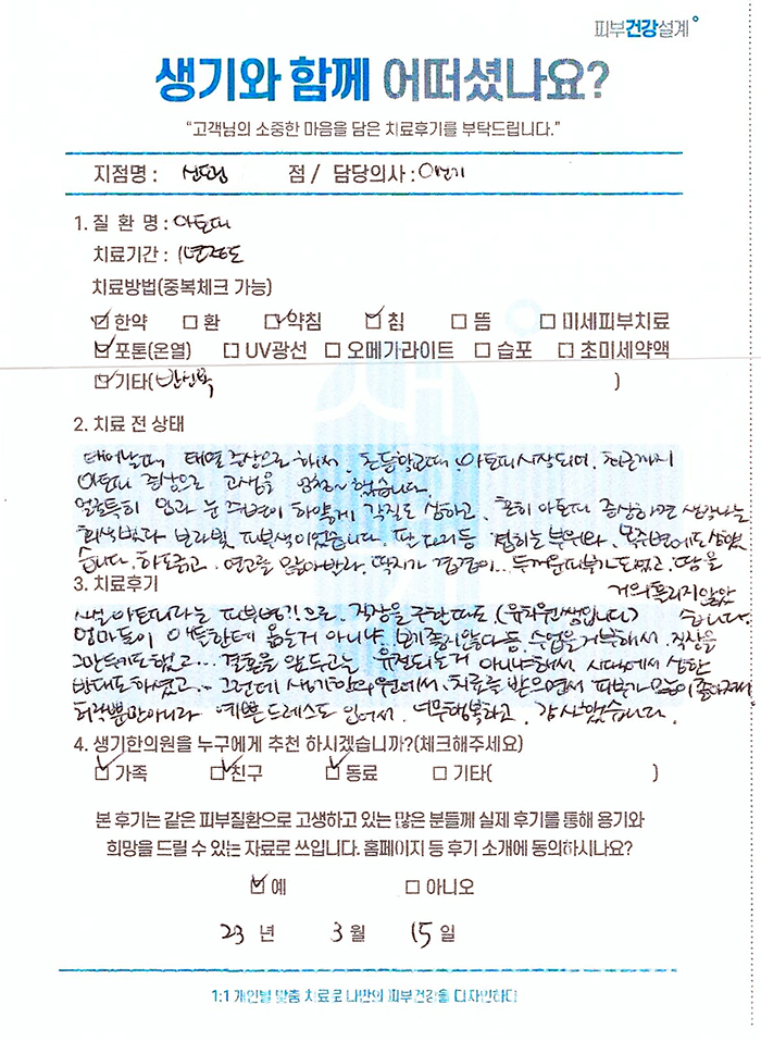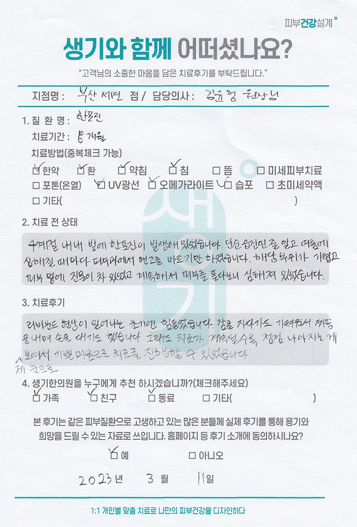 생기한의원과 함께하신 생생한 자필 및 영상 후기를 소개합니다.