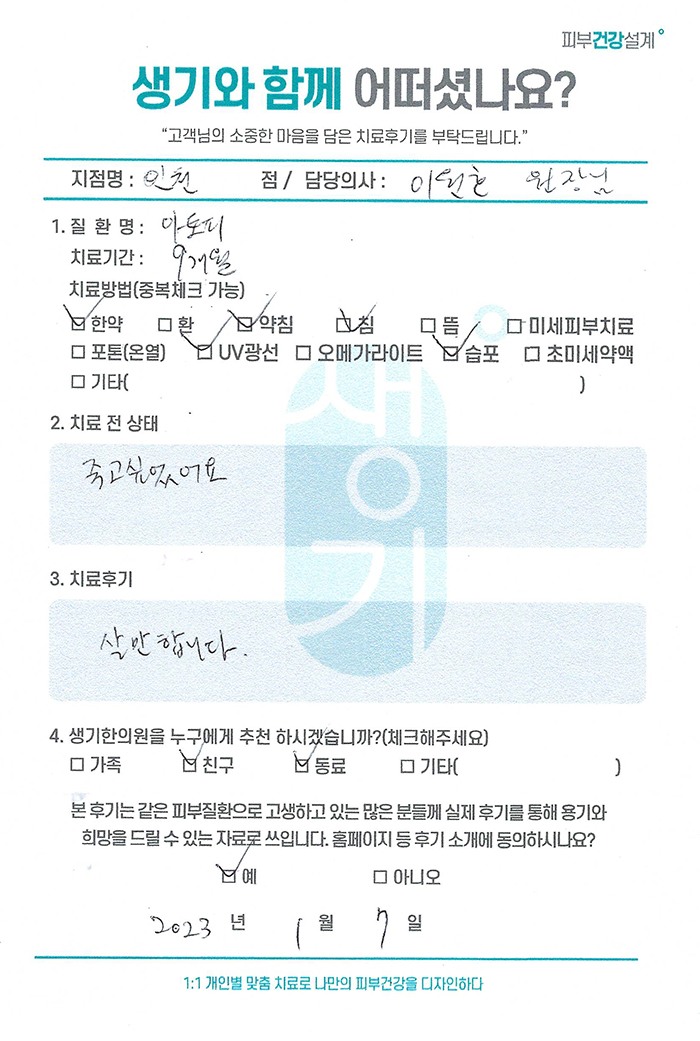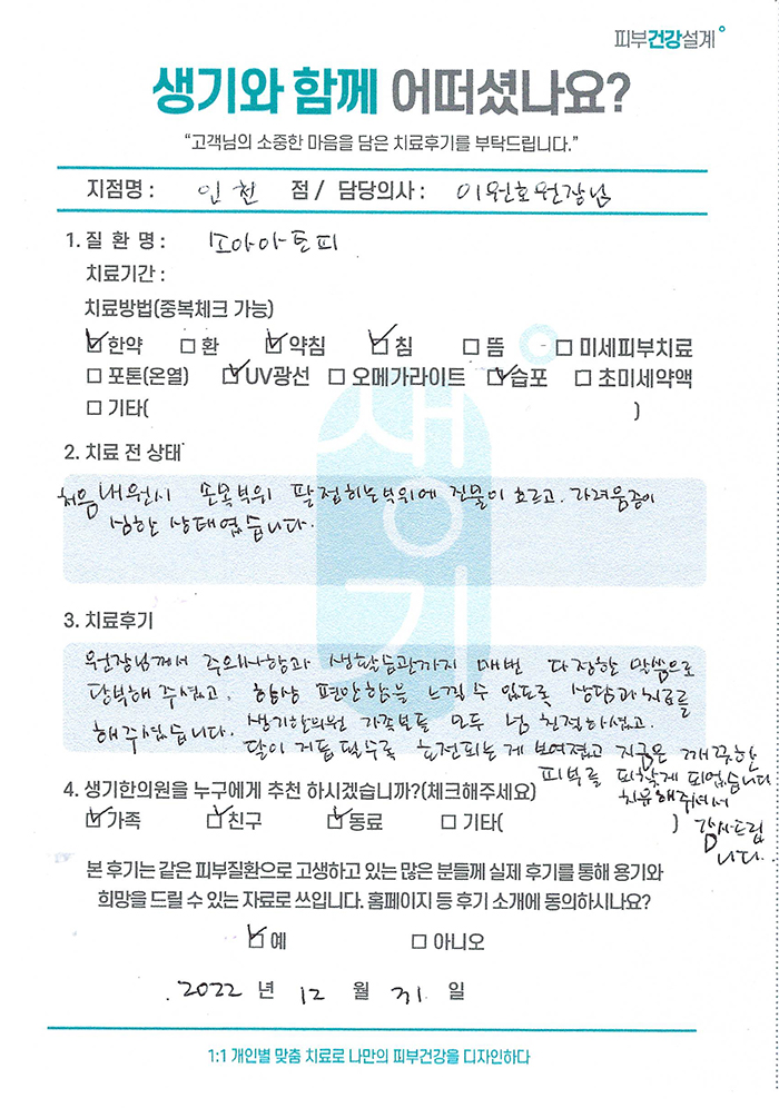 생기한의원과 함께하신 생생한 자필 및 영상 후기를 소개합니다.