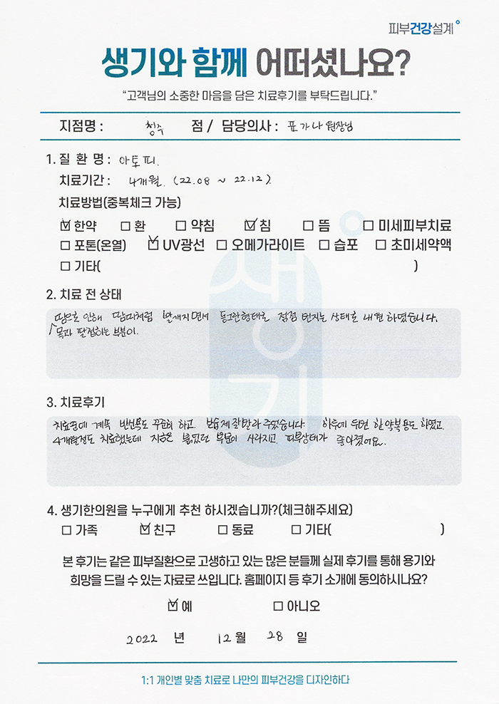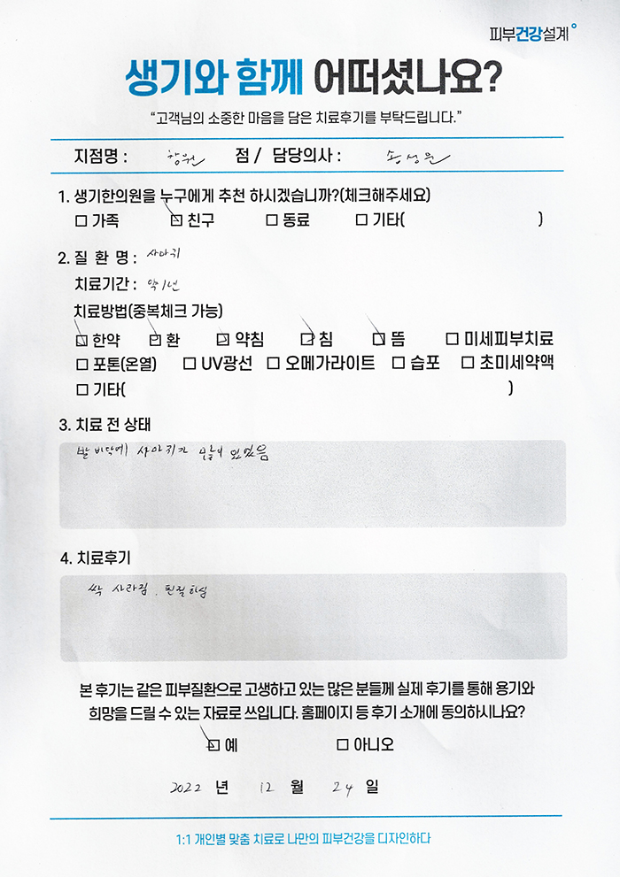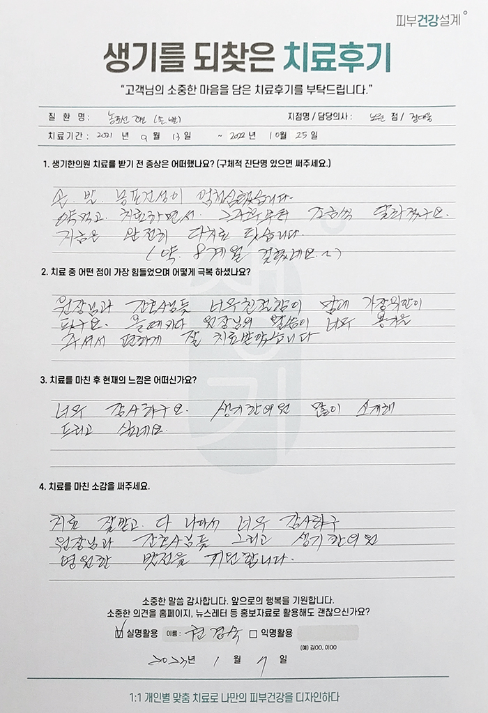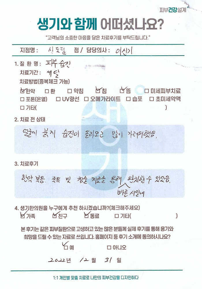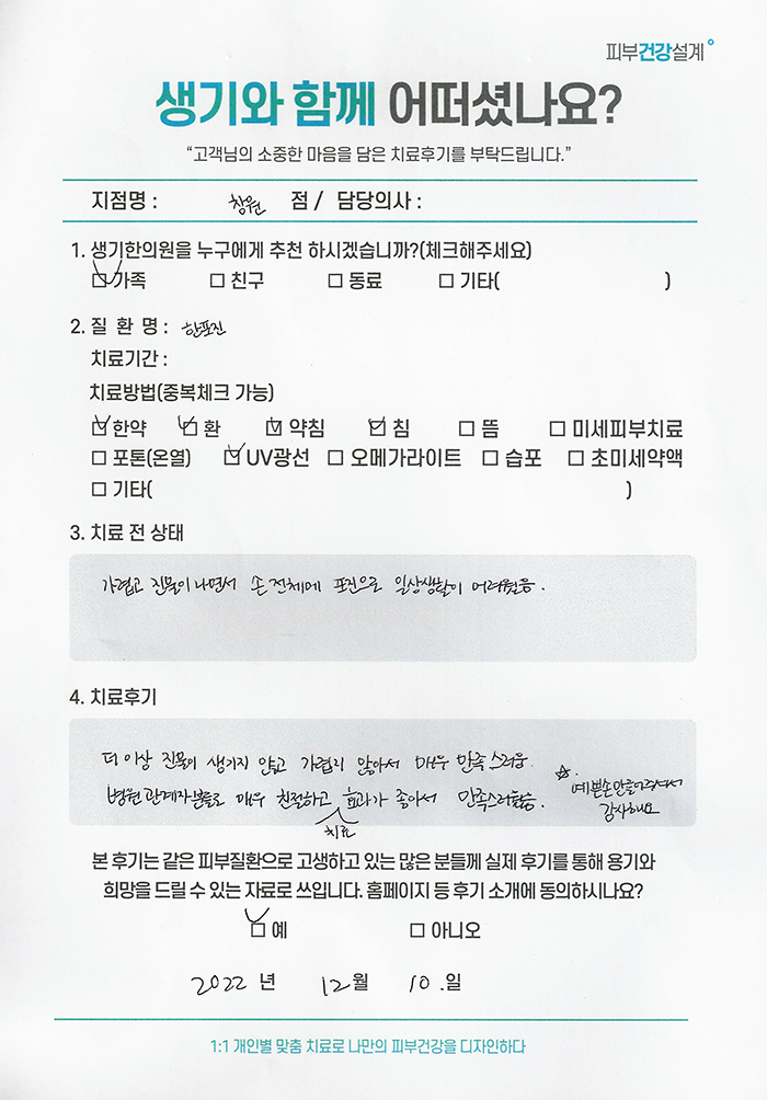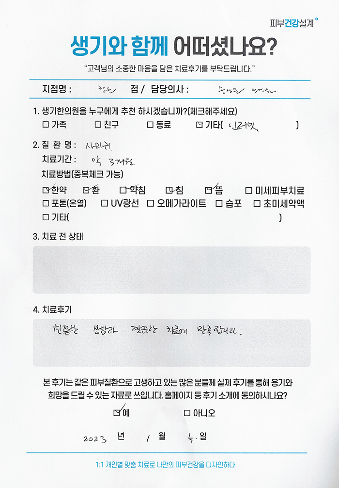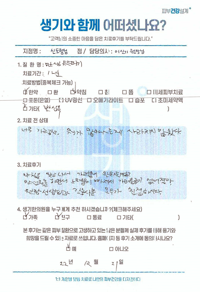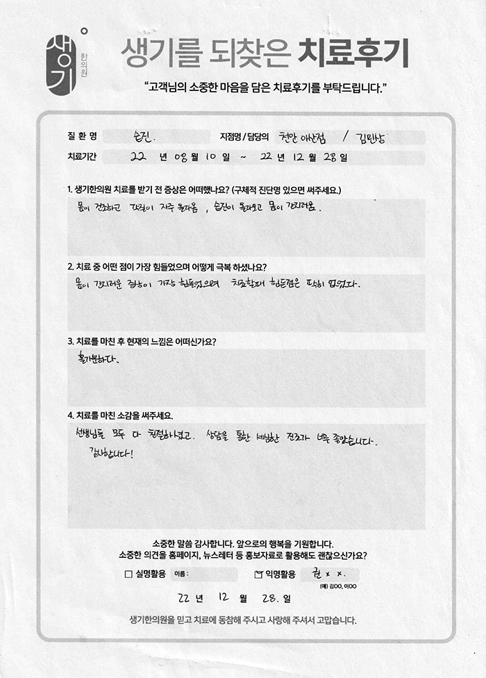 생기한의원과 함께하신 생생한 자필 및 영상 후기를 소개합니다.
