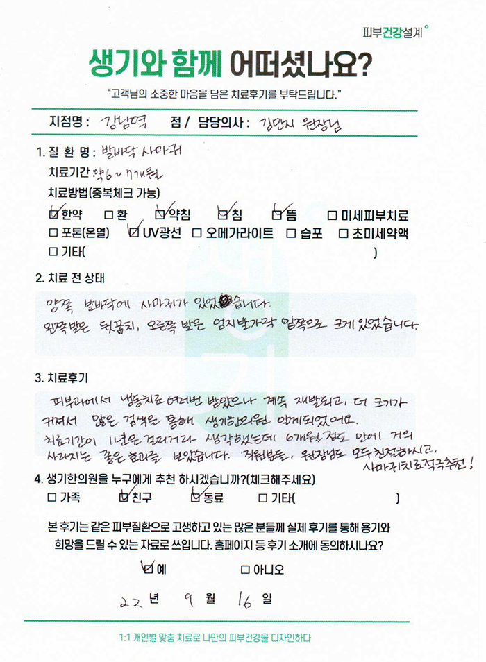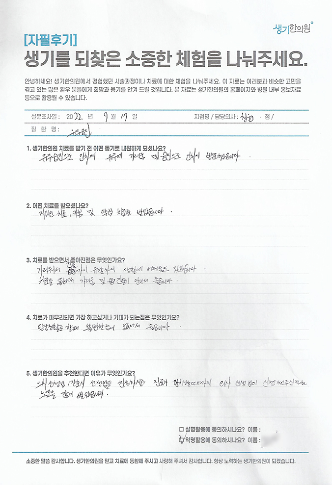 생기한의원과 함께하신 생생한 자필 및 영상 후기를 소개합니다.
