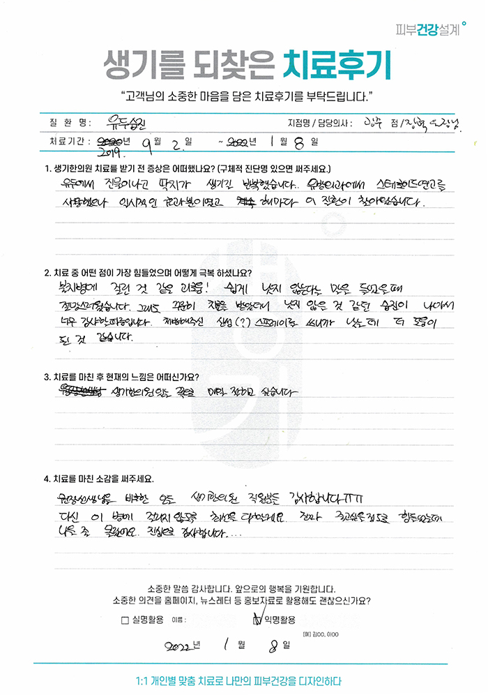 생기한의원과 함께하신 생생한 자필 및 영상 후기를 소개합니다.