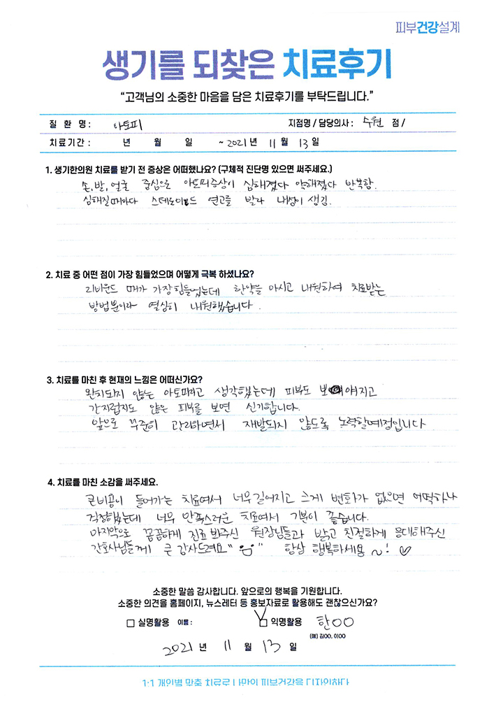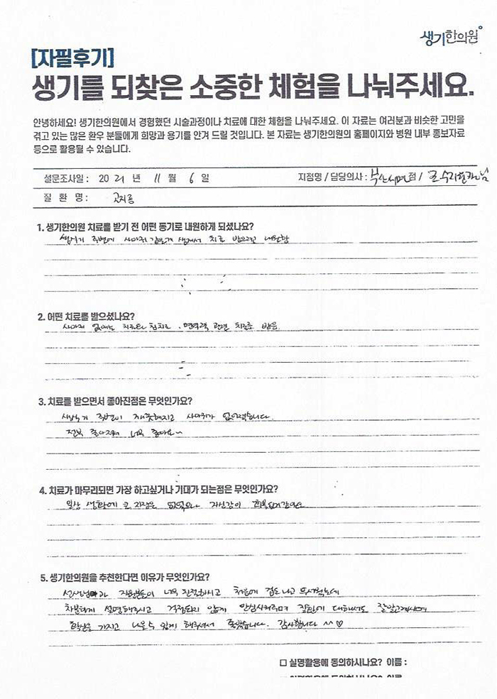생기한의원과 함께하신 생생한 자필 및 영상 후기를 소개합니다.