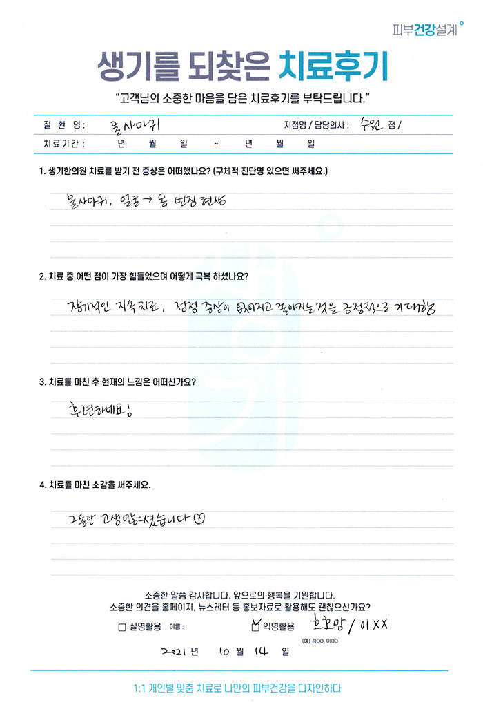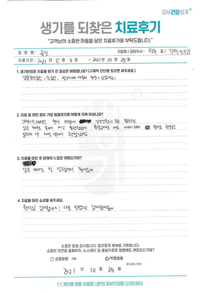 생기한의원과 함께하신 생생한 자필 및 영상 후기를 소개합니다.