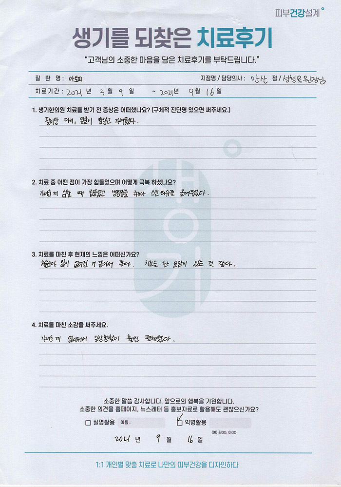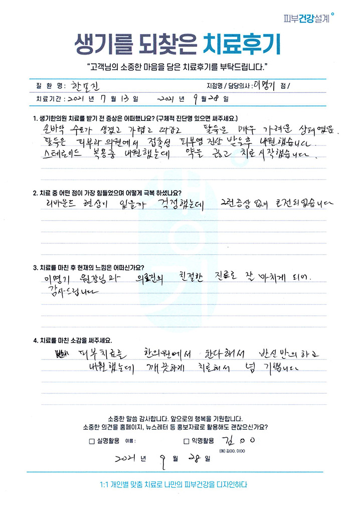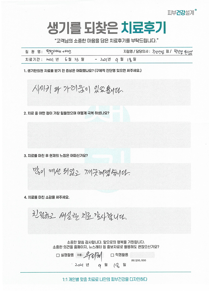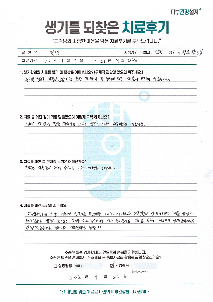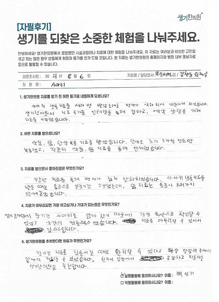 생기한의원과 함께하신 생생한 자필 및 영상 후기를 소개합니다.