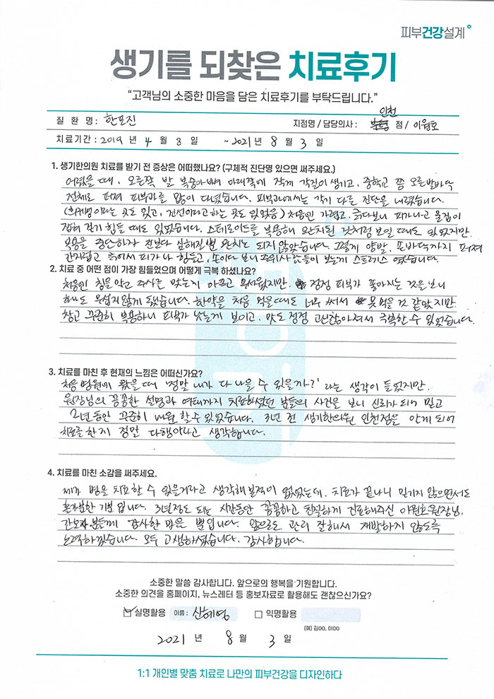 생기한의원과 함께하신 생생한 자필 및 영상 후기를 소개합니다.