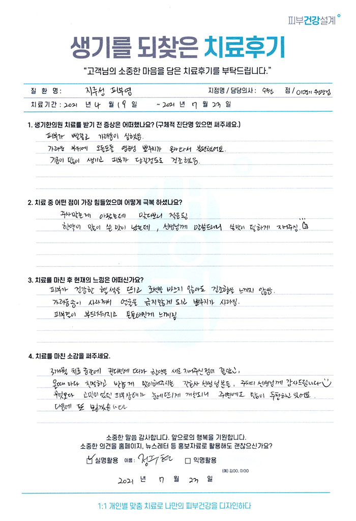 생기한의원과 함께하신 생생한 자필 및 영상 후기를 소개합니다.