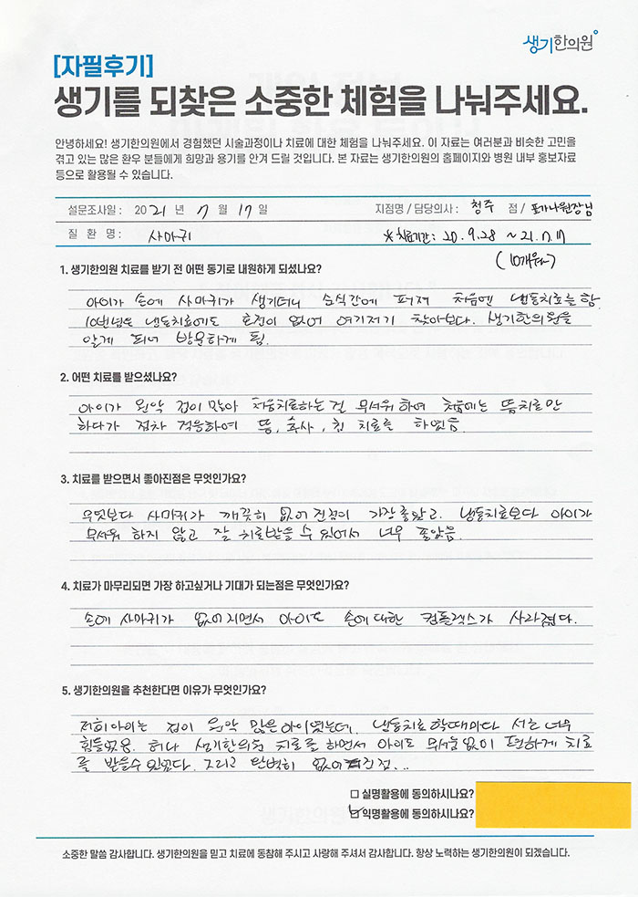 생기한의원과 함께하신 생생한 자필 및 영상 후기를 소개합니다.