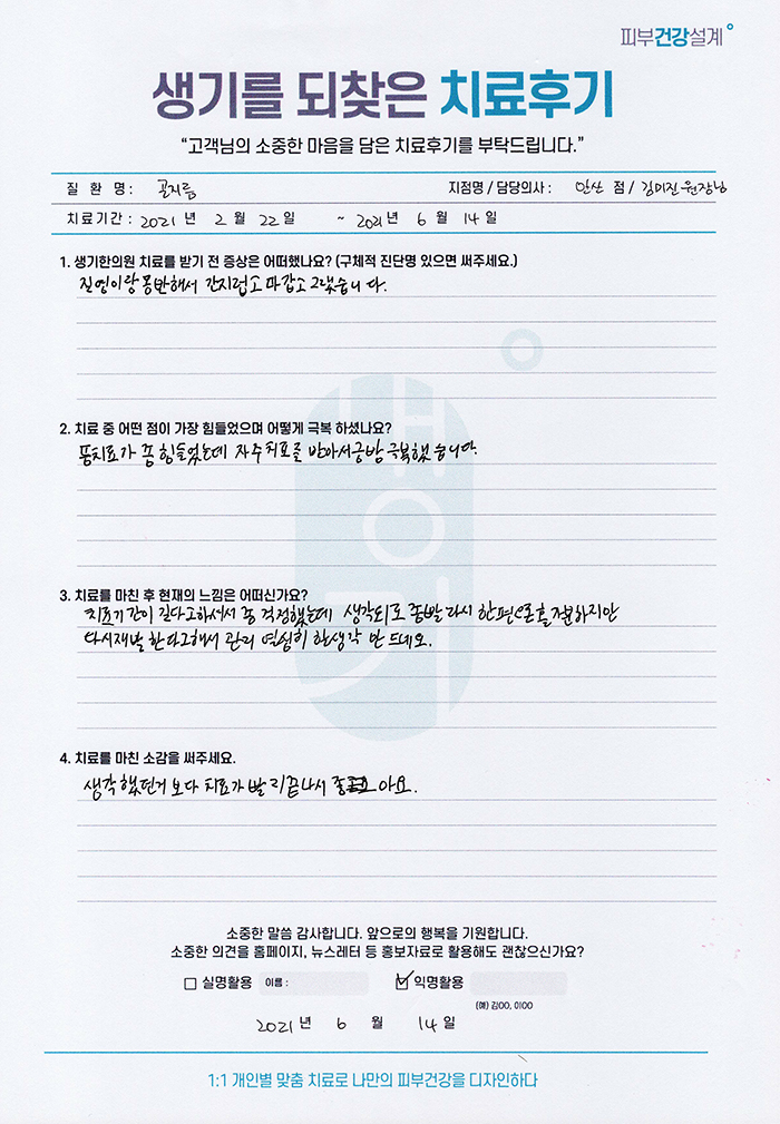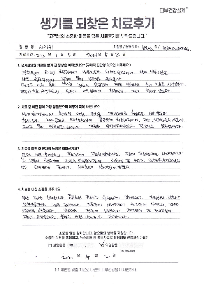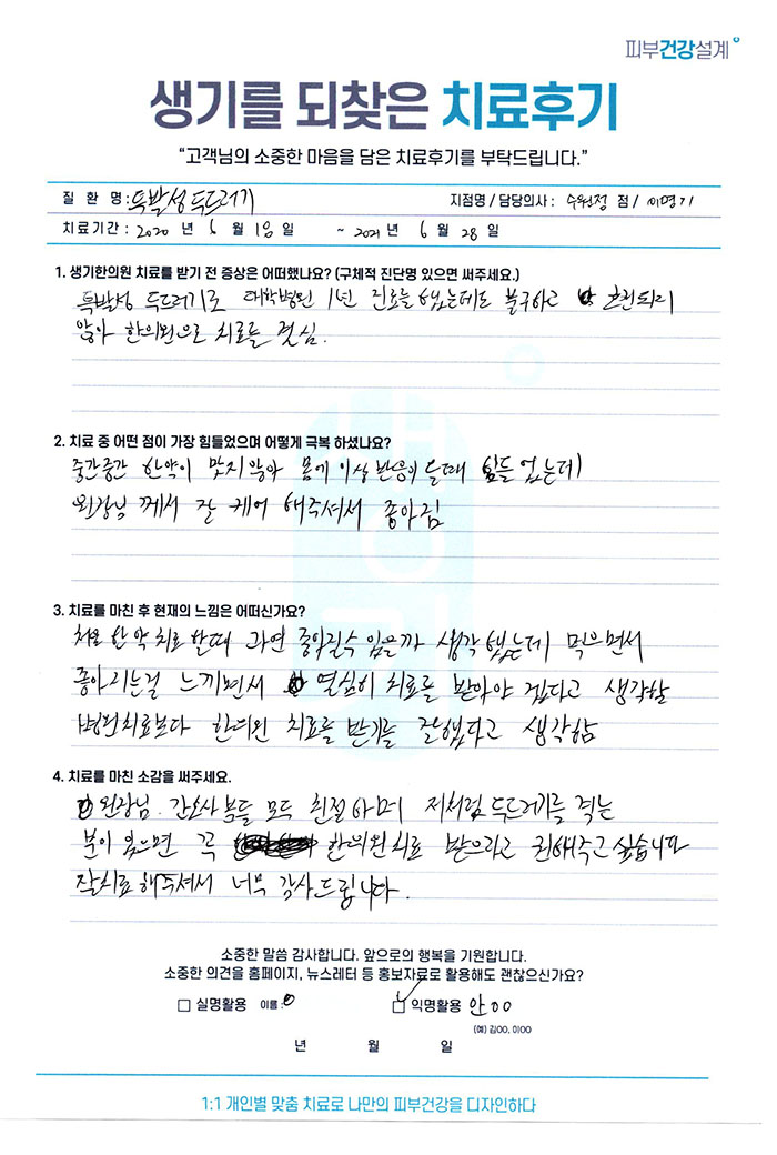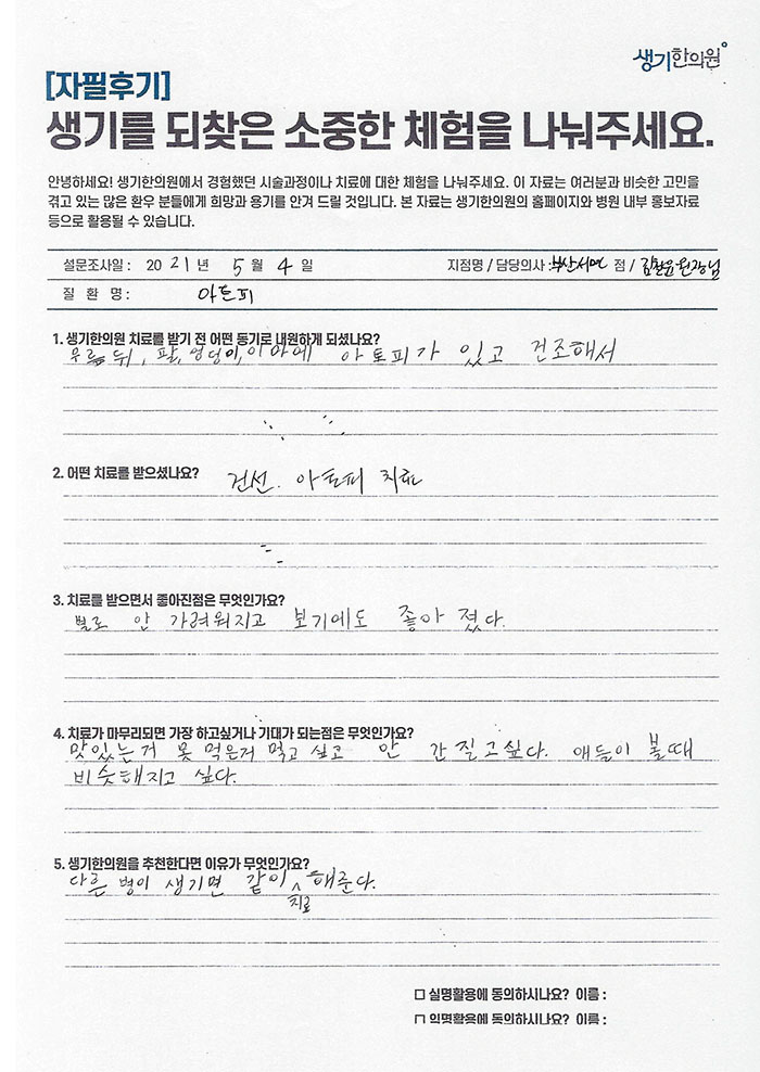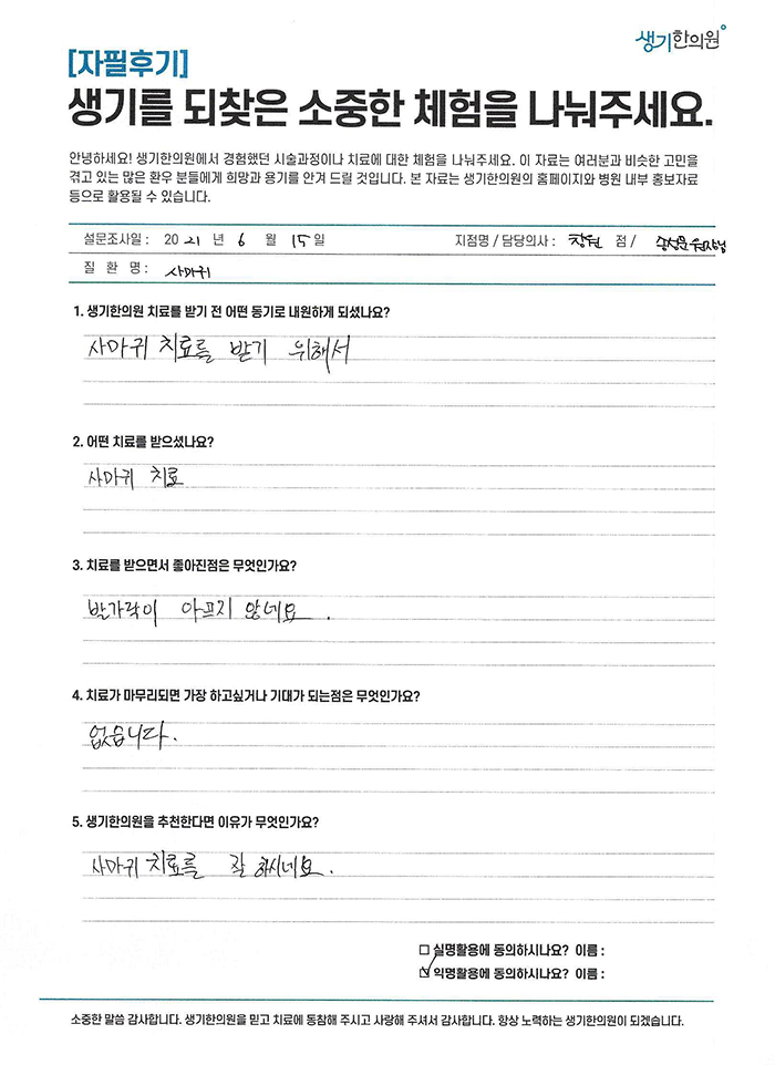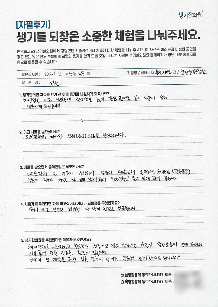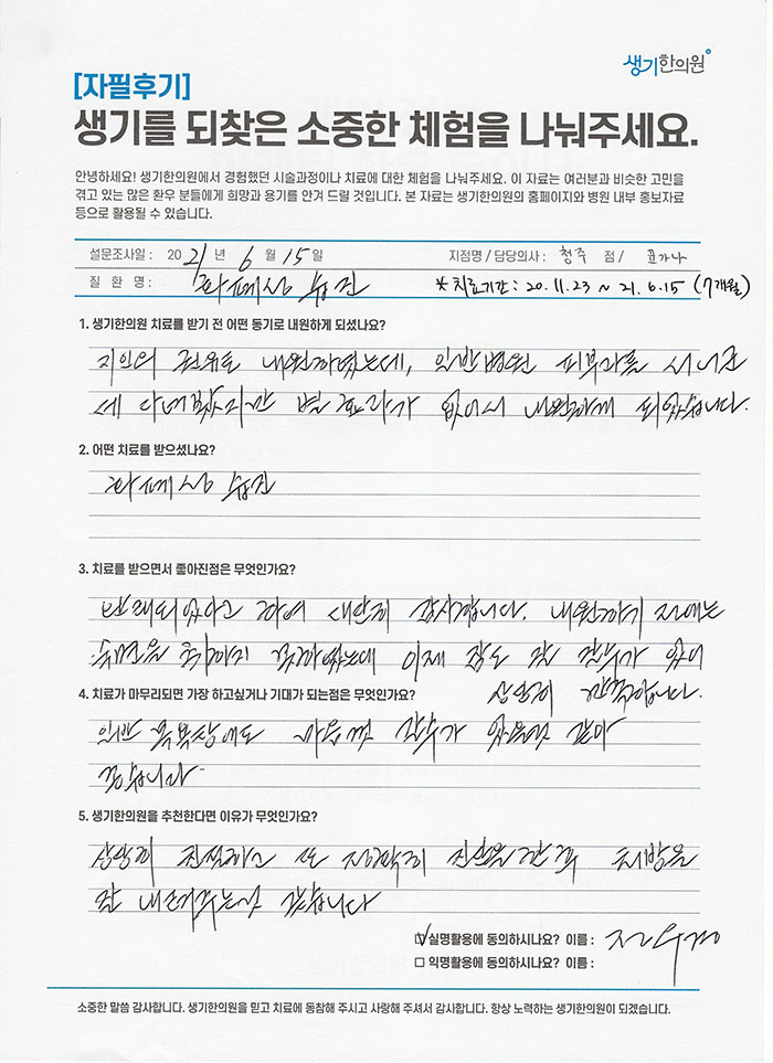 생기한의원과 함께하신 생생한 자필 및 영상 후기를 소개합니다.