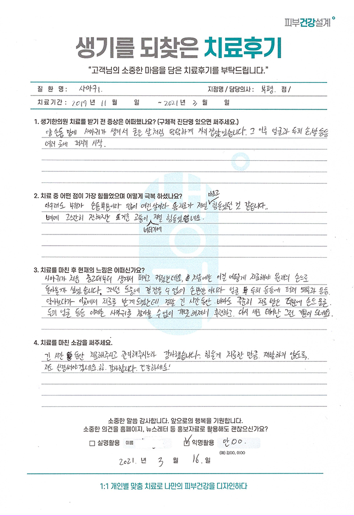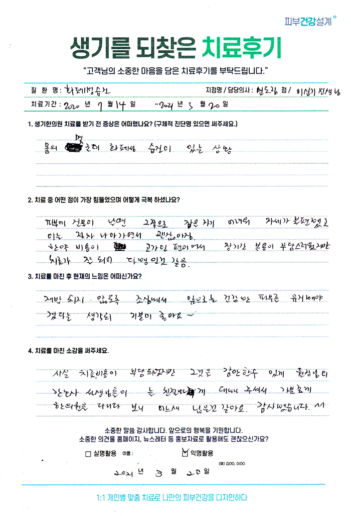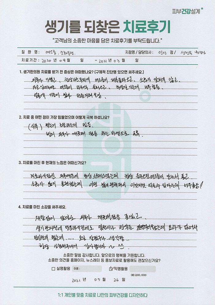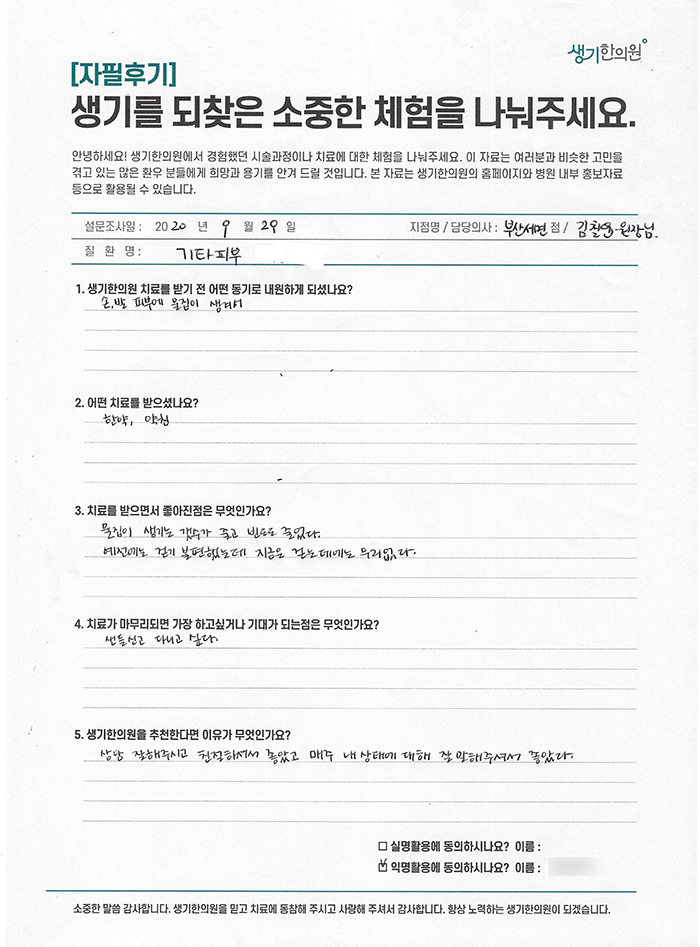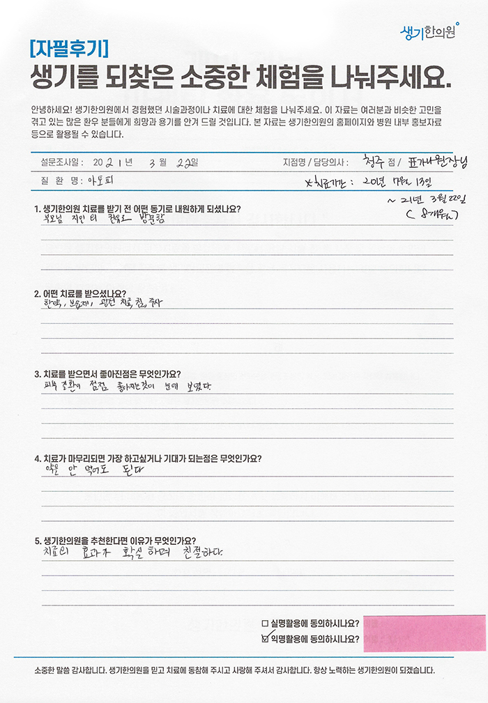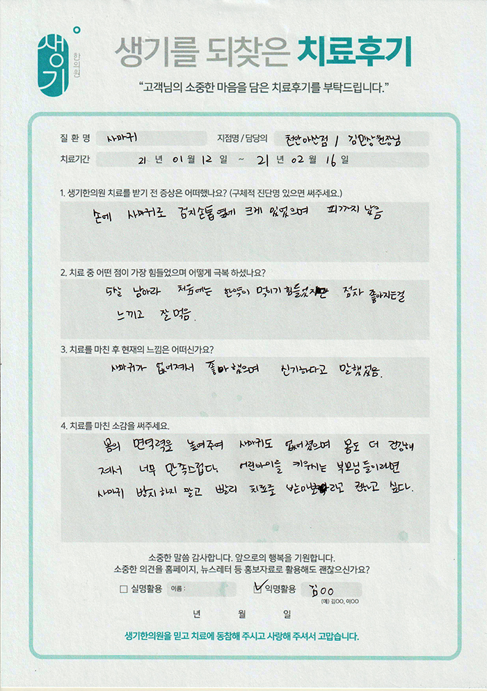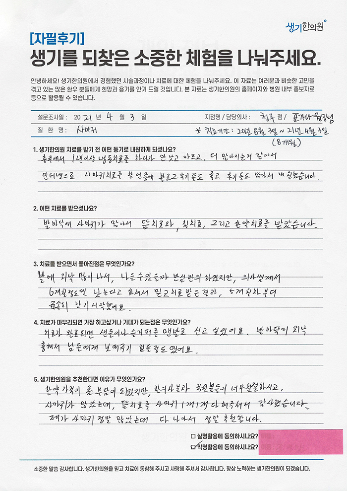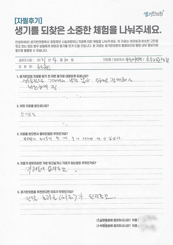 생기한의원과 함께하신 생생한 자필 및 영상 후기를 소개합니다.