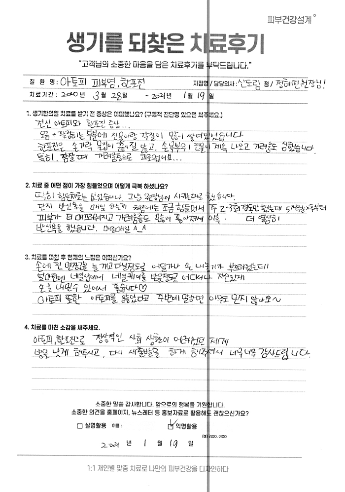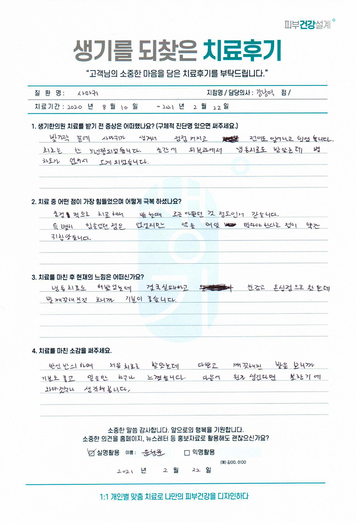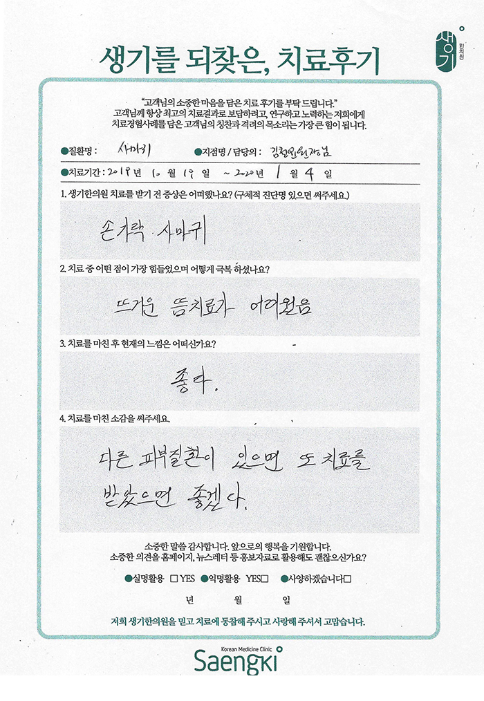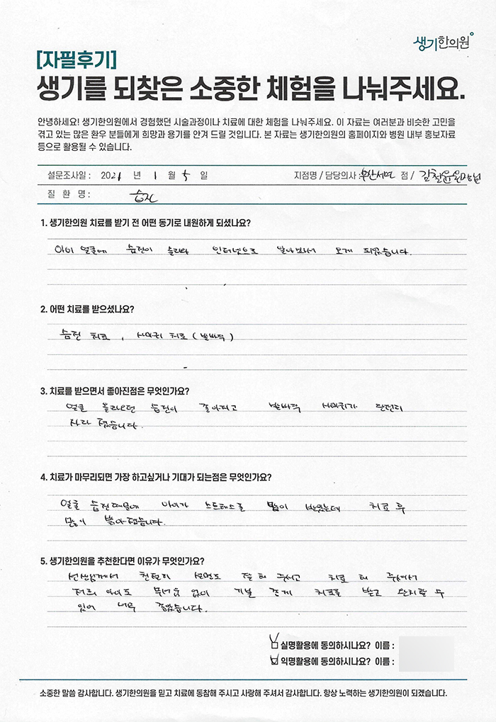 생기한의원과 함께하신 생생한 자필 및 영상 후기를 소개합니다.