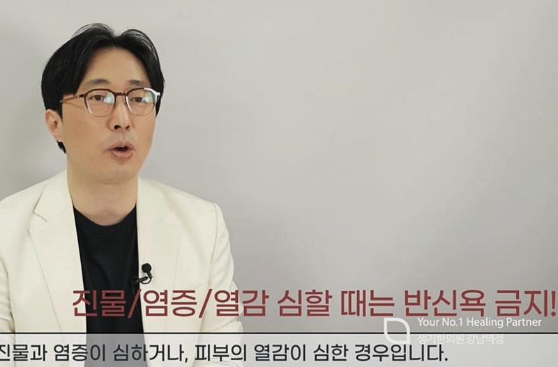 다만, 진물과 염증이 심하거나 피부에 열감이 느껴질 때는 반신욕을 피하는 것이 좋습니다.