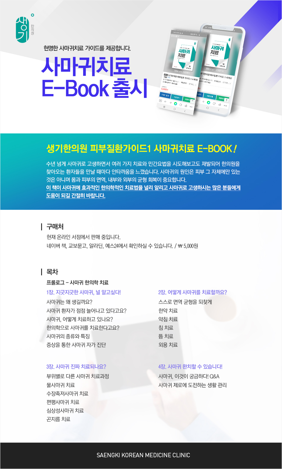 생기한의원 피부질환가이드1 사마귀치료 E-BOOK 출시!