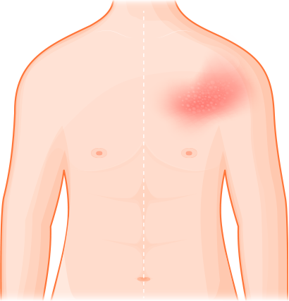 급성 통증과 특징적인 수포성 발진으로 나타납니다.