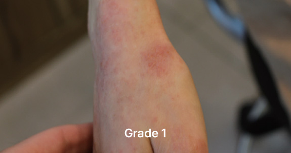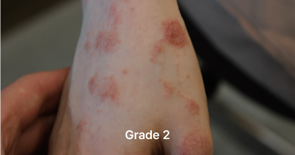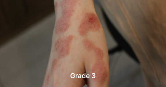 • 홍반, 진물, 심한 가려움과 국소적인 부종까지 동반