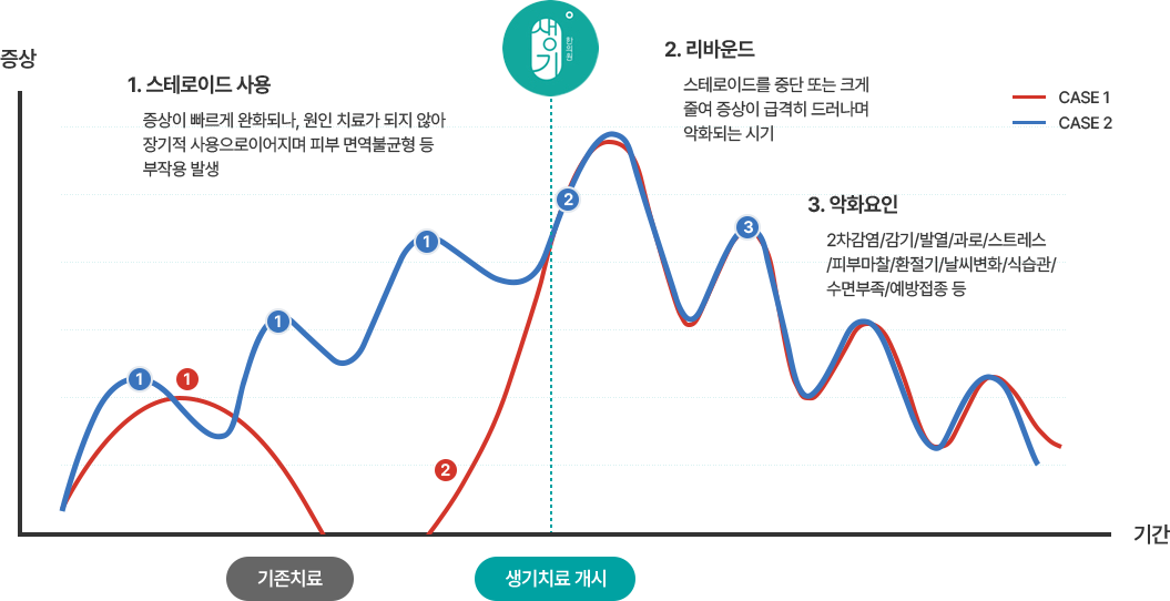 특정한 주기에 따라 호전과 악화를 반복하는 현상이 있어 치료에 노하우가 필요합니다.