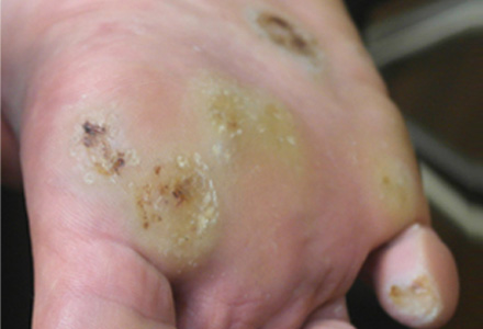 손, 발바닥 사마귀로 보행 시 통증을 유발하여